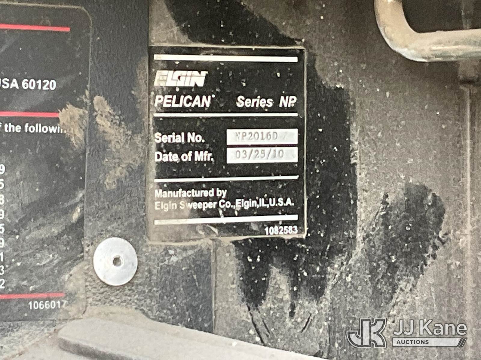 2010 Elgin Pelican S Street Sweeper, s/n NP2016D, J.D. diesel, Hydrostatic, with curbside brushes, (39,983 miles) (No Title) (Runs, Moves & Operates) (Check Engine Light On, Front Box Rusted, No AC, Rust Damage, Glass Broken) (Reads 14,227 hours) NOTE: This unit is being sold AS IS/WHERE IS via Timed Auction and is located in Verona, KY. Inspection & preview days for this unit are the 2 business days prior to the first day of items closing for this auction, item is located at 2841 Verona-Mudlick Rd Ste B Verona, KY 41092 and hours of operations are 8a-4p. For pre-sale questions, please contact Office Staff @ (502) 612-5080. Auctioneer Michael Whitebread / License # 256617. (Buyer is responsible for removal. Assistance by consignor or JJ Kane Auctions is not assured.)