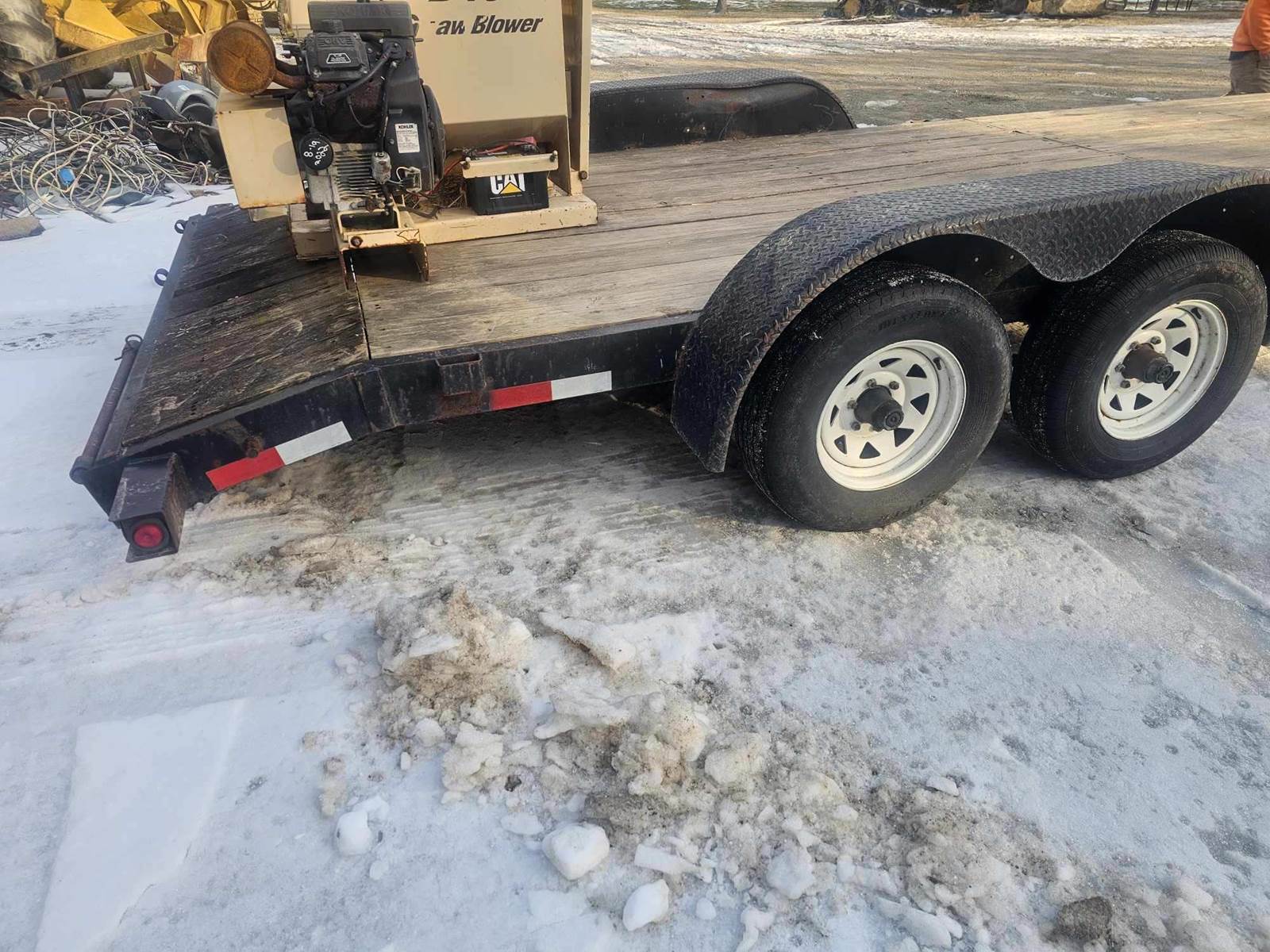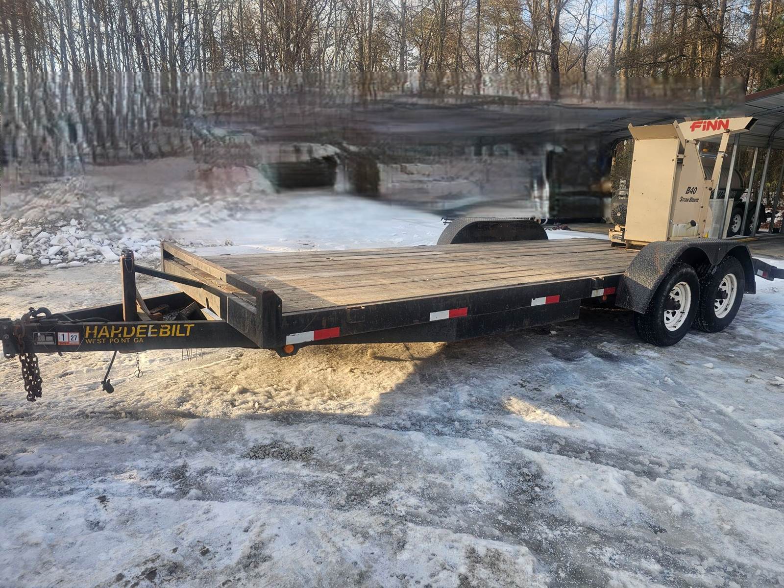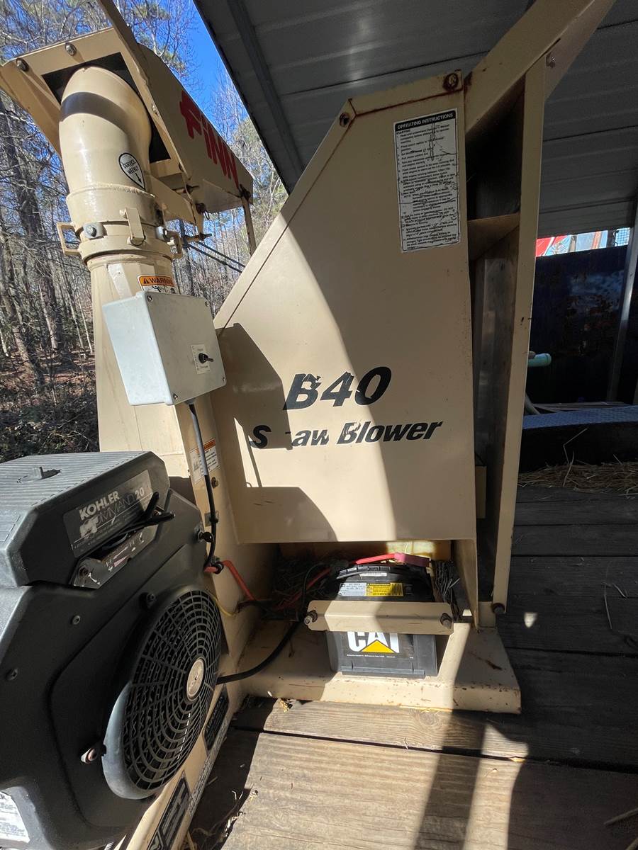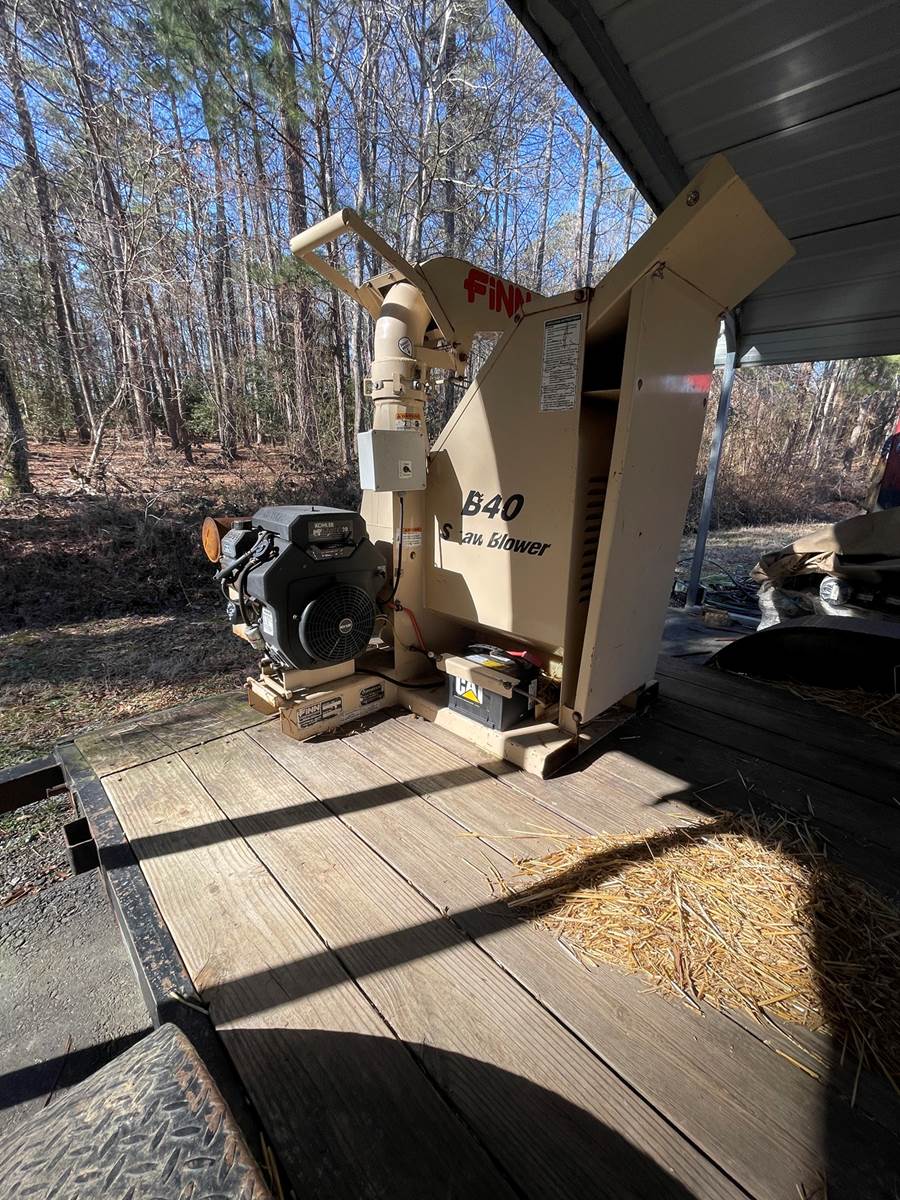 2010 Finn B-40 Straw Blower with Kohler Command 20HP motor, comes mounted on 2005 Hardeebilt 7'x18' dovetail dual axle trailer, GVWR 9950lbs. Load the trailer with bales of straw and go to work. Call for more information, financing available.