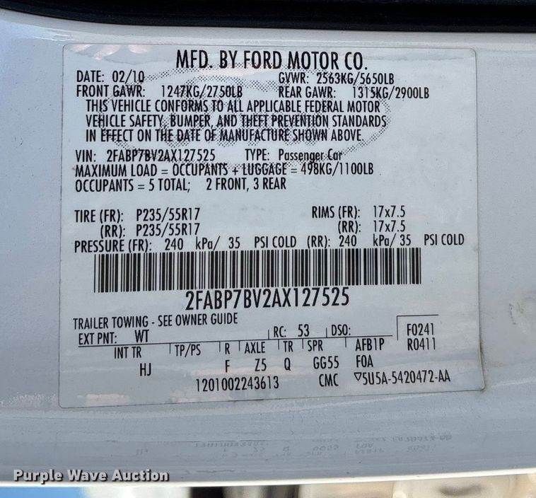 VIN: 2FABP7BV2AX127525