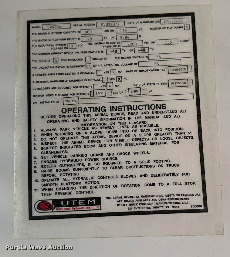 2010 Utility Truck Equipment fg. LLC UVN35A