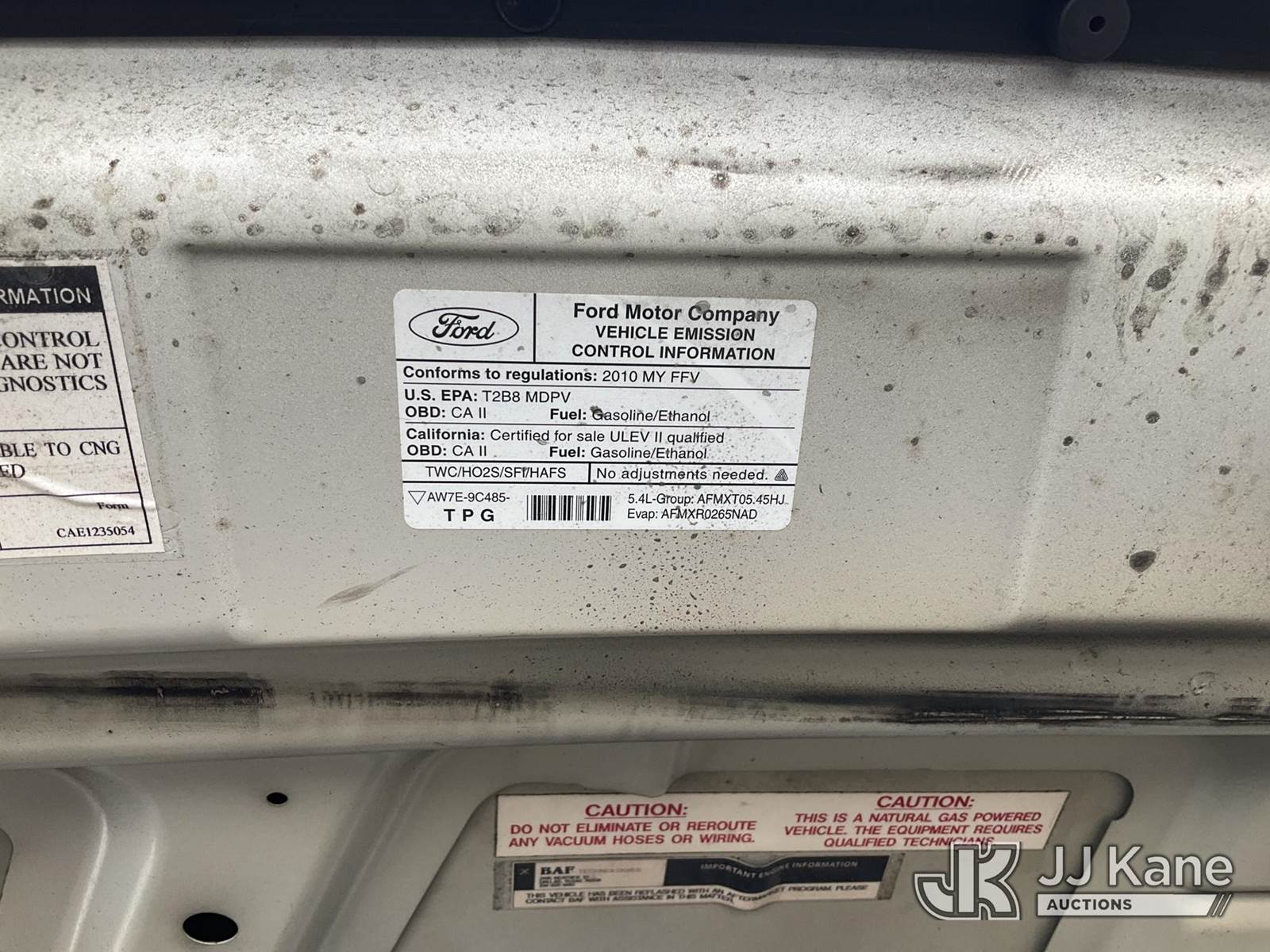 2010 Ford Econoline E-250 Cargo Van, s/n 1FTNE2EL0ADA84742, 8-cyl, 4-Speed Automatic, RWD, CNG Only, A/C, (70,845 miles) (Not Running, Conditions Unknown) (CNG Tank Expired 04/2025, Must Be Towed) (Bidding Restricted to Licensed Vehicle Dealers Only), This is a Titled Item NOTE: This unit is being sold AS IS/WHERE IS via Timed Auction and is located in Jurupa Valley, CA. Inspection & preview days for this unit are the 2 business days prior to the first day of items closing for this auction, item is located at 4510 Muth Way Jurupa Valley, CA 92509 and hours of operations are 8a-4p. For pre-sale questions, please contact please contact Office Staff @ (310) 353-7140. Dealer License Number 45696. (Buyer is responsible for removal. Assistance by consignor or JJ Kane Auctioneers is not assured.)