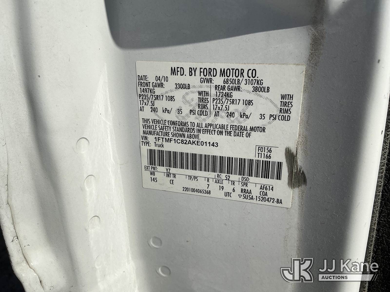 2010 Ford F-150 Service Truck, 8-cyl gas, Auto, A/C, (147,434 miles) (Runs & Moves) (Paint & Body Damage) This is a Titled Item NOTE: This unit is being sold AS IS/WHERE IS via Timed Auction and is located in El Paso, TX. Inspection & preview days for this unit are by appointment only; please contact us at contact@jjkane.com or 84-Go-JJKane for more details. (Buyer is responsible for removal. Assistance by consignor or JJ Kane Auctions is not assured.)