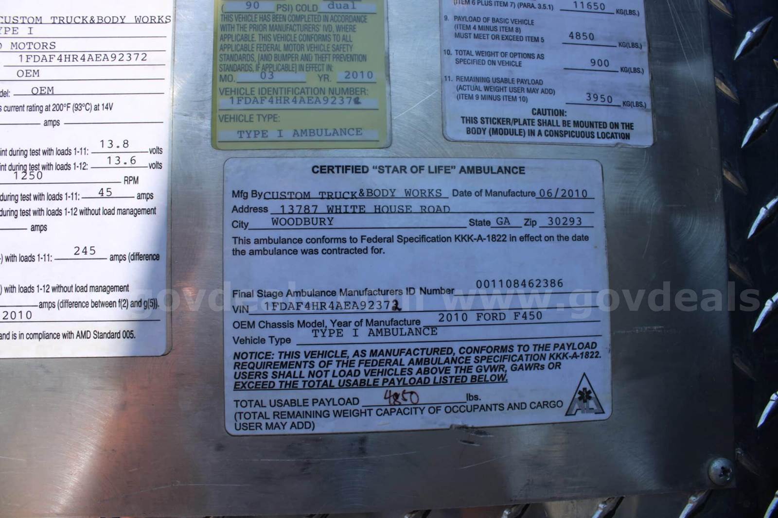 2010 Ford F-450 4X4 Custom Truck and Body Works ambulance with 124,504 miles. This ambulance rides and drives great. Very clean inside and out. Heat/AC works as it should in the cab and in the patient area. The 4X4 and all emergency lighting works as it should. The unit features 4-point safety harness belts, Ceiling O2, curbside O2, vaulted HVAC, and Defib mount. The module measures 145 inches in length and has 70 inch headroom. The ambulance has received a full cleanup/detail, and a thorough mechanical inspection was done by our in-house mechanics and ambulance techs at Elite Ambulance Sales. Anything identified was attended to.