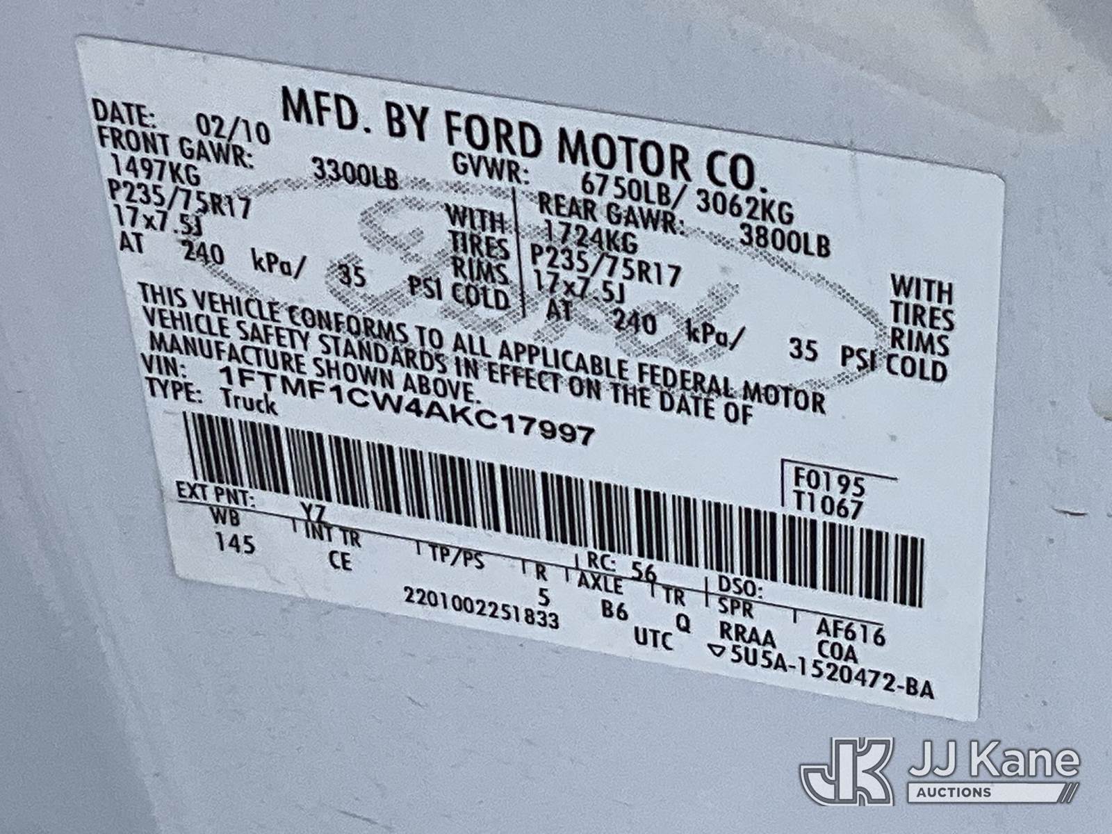 2010 Ford F150 Pickup Truck, 8-cyl gas, Auto, A/C, (111,653 miles) (Runs & Moves) This is a Titled Item NOTE: This unit is being sold AS IS/WHERE IS via Timed Auction and is located in Salt Lake City, UT. Inspection & preview days for this unit are the 2 business days prior to the first day of items closing for this auction, item is located at 2353 N Redwood Rd Salt Lake City, UT 84116 and hours of operations are 8a-4p. Titles executed exactly as bidder registered. Ensure your name and/or business name and address in JJ Kane and/or ProxiBid is correct before bidding. For pre-sale questions, please contact Office Staff @ (801) 519-0123. (Buyer is responsible for removal. Assistance by consignor or JJ Kane Auctions is not assured.)