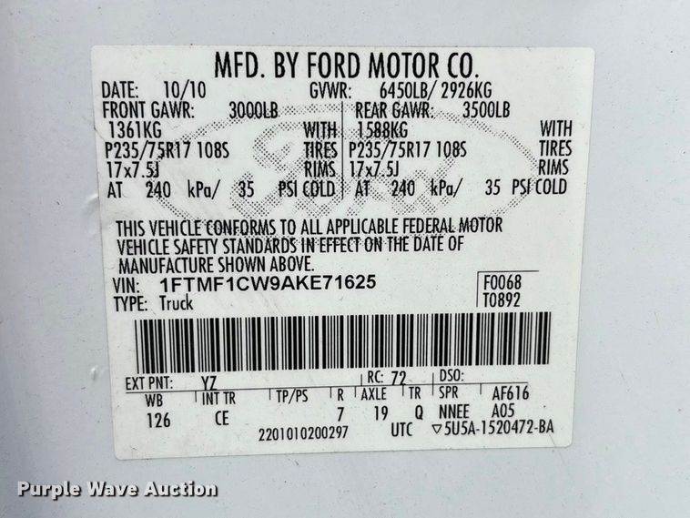 VIN: 1FTMF1CW9AKE71625