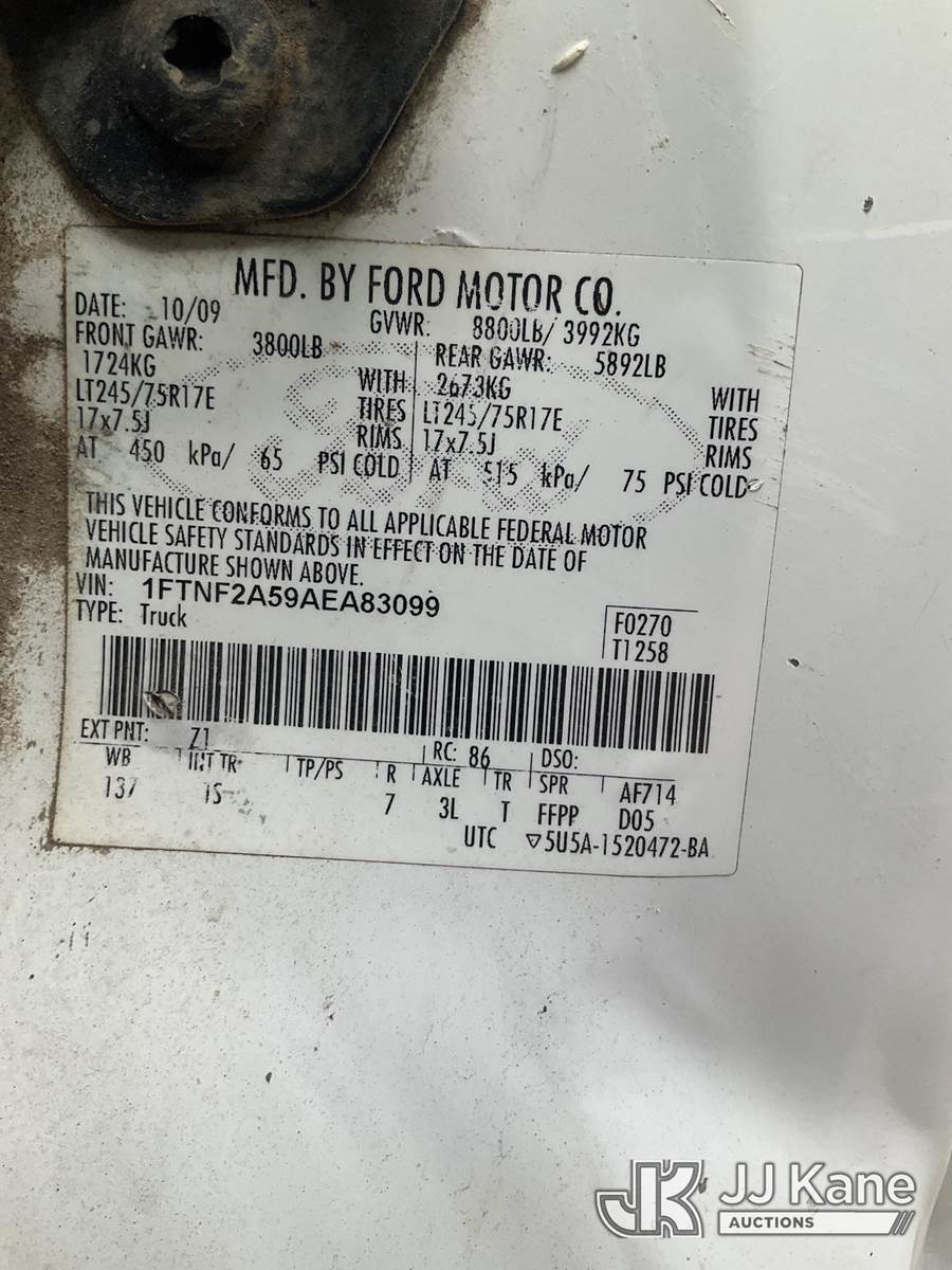 2010 Ford F250 Service Truck, 5.4L V8 SOHC 16V gas, RWD, Auto, A/C, (162,690 miles) (Runs & Moves) (Check Engine Light On, Utility Body Rust Damage, Grill Damaged, Paint Damage) (Reads 14,813 hours) This is a Titled Item NOTE: This unit is being sold AS IS/WHERE IS via Timed Auction and is located in South Beloit, IL. Inspection & preview days for this unit are the 2 business days prior to the first day of items closing for this auction, item is located at 14354 Dearborn Ave South Beloit, IL and hours of operations are 8a-4p. For pre-sale questions, please contact Derek Eklund at (608) 904-0618 or (derek.eklund@jjkane.com). (Buyer is responsible for removal. Assistance by consignor or JJ Kane Auctions is not assured.)