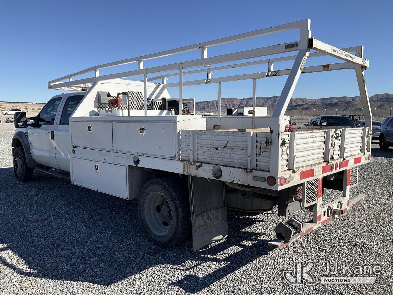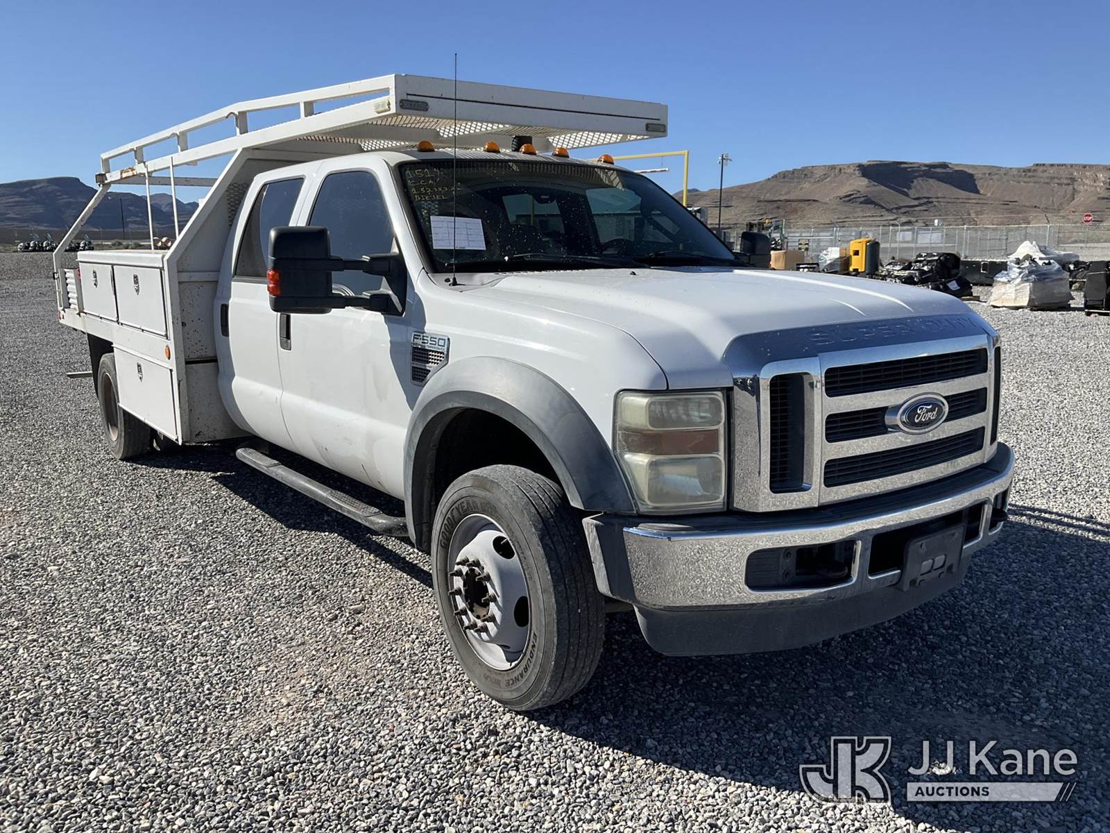 2010 Ford F550 Crew-Cab Flatbed/Service Truck, 6.4L V8 OHV 32V TURBO DIESEL, RWD, Auto, A/C, (152,383 miles) (Runs & Moves) This is a Titled Item NOTE: This unit is being sold AS IS/WHERE IS via Timed Auction and is located in Las Vegas, NV. Inspection & preview days for this unit are the 2 business days prior to the first day of items closing for this auction, item is located at 14655 Grand Valley Pkwy Las Vegas, NV 89165 and hours of operations are 8a-4p. Titles executed exactly as bidder registered. Ensure your name and/or business name and address in JJ Kane and/or ProxiBid is correct before bidding. For pre-sale questions, please contact Office Staff @ (801) 519-0123 and provide sale date and lot number. Las Vegas Dealer License Number DLR000053086 / OHV000053094. (Buyer is responsible for removal. Assistance by consignor or JJ Kane Auctions is not assured.)