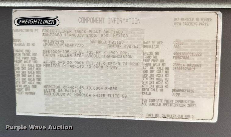 2012 Freightliner 114SD crane truck, Miles: 151,121 on odometer, Hours: 11,123 on meter, VIN: 1FVHG3DV7CDBU0444, Engine, Detroit Diesel...
