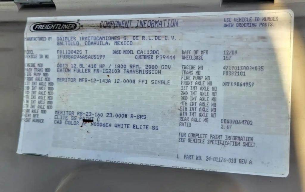 2010 Cascadia 113 Day Cab For Parts, Wired for Detroit DD13 Engine and Eaton 10 Speed Transmission