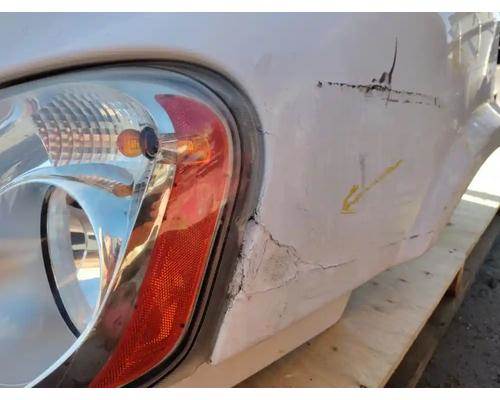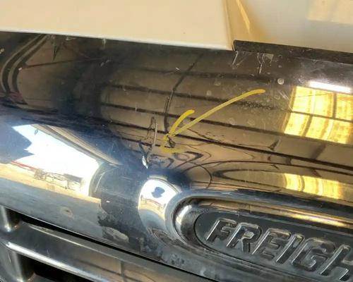 2010 Cascadia 113 Hood, Complete, 36.5" L, P/N A17-15588-000 (Replaced By A17-15588-010). Failed Repair On LH Fender Behind Headlight (Crack Visible On Inside), Exposed Fiberglass Above RH Mirror, Mirror Bracket Gouged, Grille Cracked, Missing RH Side Ven