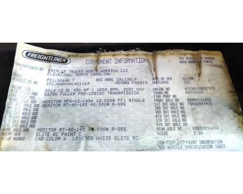 2010 Cascadia 132 Mid Roof Sleeper Cab, Complete, Wired for Detroit DD13 Engine and Eaton 10 Speed Transmission. Dent On Lower RH Exterior, Dents On Bottom Rear Edge, Driver Seat Seam Separating, Driver Door Missing 2 Switches,