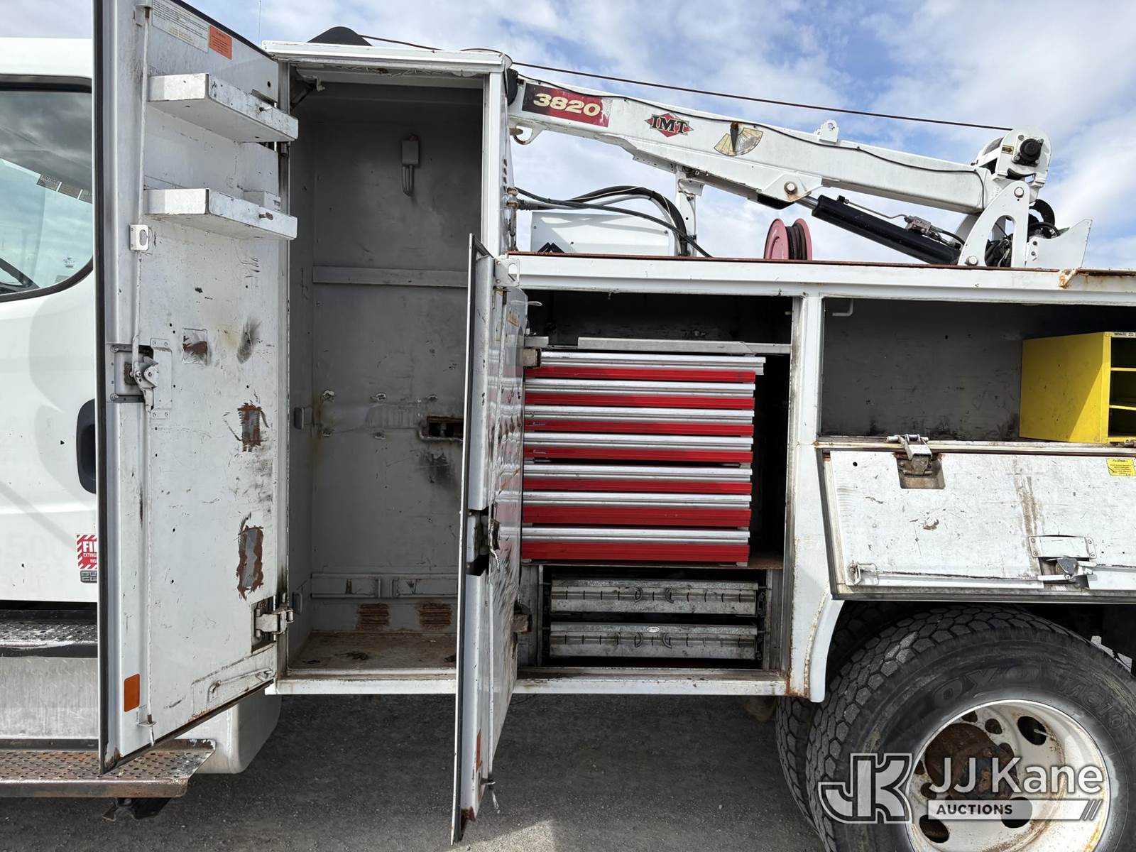 2010 Freightliner M2 106 Mechanics Service Truck, 6.7L L6 DIESEL 4X2, diesel, Auto, A/C, with IMT Crane w/ Remote Control, Air Compressor, (289,882 miles (unverified)) (Runs & Moves) (Starts With Jump, PTO Engages, Unknown Operation Of Attached Equipment, Check Engine Light On, Crane/Outriggers Do Not Operate, Paint & Body Damage) (Reads 12,668 hours) This is a Titled Item NOTE: This unit is being sold AS IS/WHERE IS via Timed Auction and is located in Hawk Point, MO. Inspection & preview days for this unit are the 2 business days prior to the first day of items closing for this auction, item is located at 25 State Highway A Hawk Point, MO 63349 and hours of operations are 8a-4p. For pre-sale questions, please contact Adam Stanek at (636) 295-1594. (Buyer is responsible for removal. Assistance by consignor or JJ Kane Auctions is not assured.)
