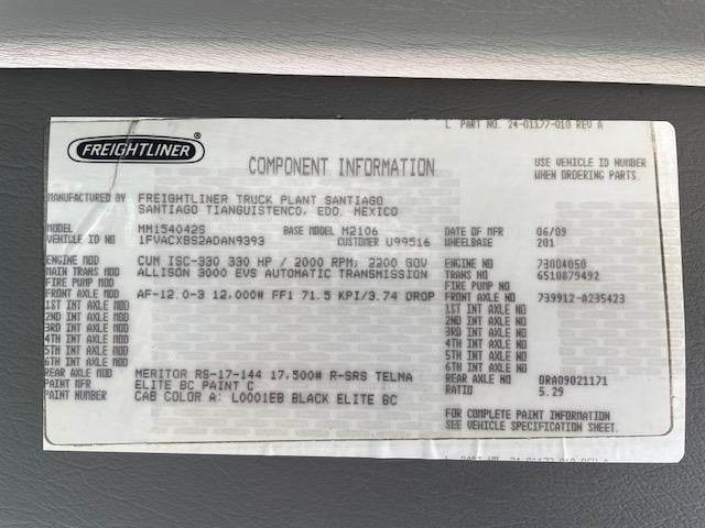 2010 Freightliner M2106 4-Door-Crew Cab Single-Axle Cab & Chassis Truck , Cummins ISC 8.3L @ 330 H.P., Allison 3000-RVS 6-Speed Automatic O/D Transmission, 5.29 Ratio, Spring-Suspension, 201" W.B., 29.5K G.V.W.R., CDL-REQUIRED, Air-Brakes, AF-12.0-3 (12K) FF1 71.5 KPI / 3.74 Drop Front-Axle, Meritor RS-17-144 (17.5K) R-SRS Rear-Axle, 11R-22.5 Tires, 6-Aluminum Wheels, 88" Cab-To-Axle, 126" Back of Cab to End of Frame, Horizontal Exhaust, Cab Air-Ride Suspension, D.P.F. Equipped, P/S, A/C, C/C, Tilt-Telescoping Steering Column, Dual 4-Way Power Mirrors, Mirror Heat, Retired Municipal Unit, Fleet Maintained, Commercial Financing Available O.A.C., 120,493 Miles! / 120,490 ECM Miles!, 10,100 Hours!