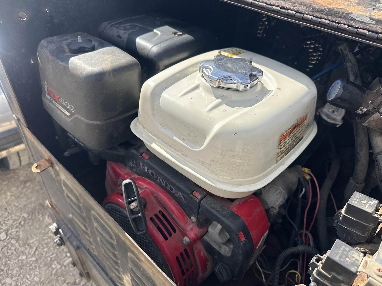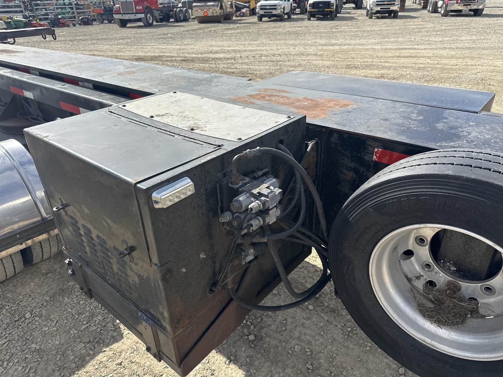 GVWR: 70000LB, Extendable Deck, Remote Steering, Hydraulic Stabilizer, Hydraulics Powered by Honda iGX 440 Gasoline Engine W/ Remote Start, Electric Over Hydraulic Adjustable Neck, Adjustable Ride Height, Electric Over Hydraulic Landing Gear, Sliding Deck Platforms, Air Ride, Left Side Storage Box, Full Aluminum Rims, 245/70R17.5 Tires