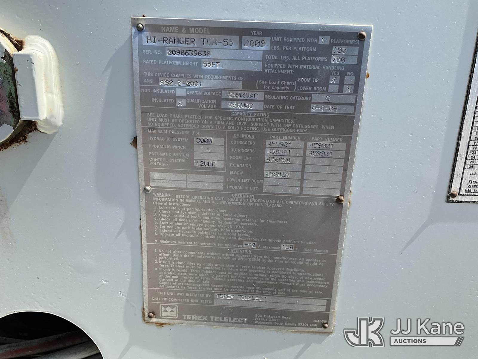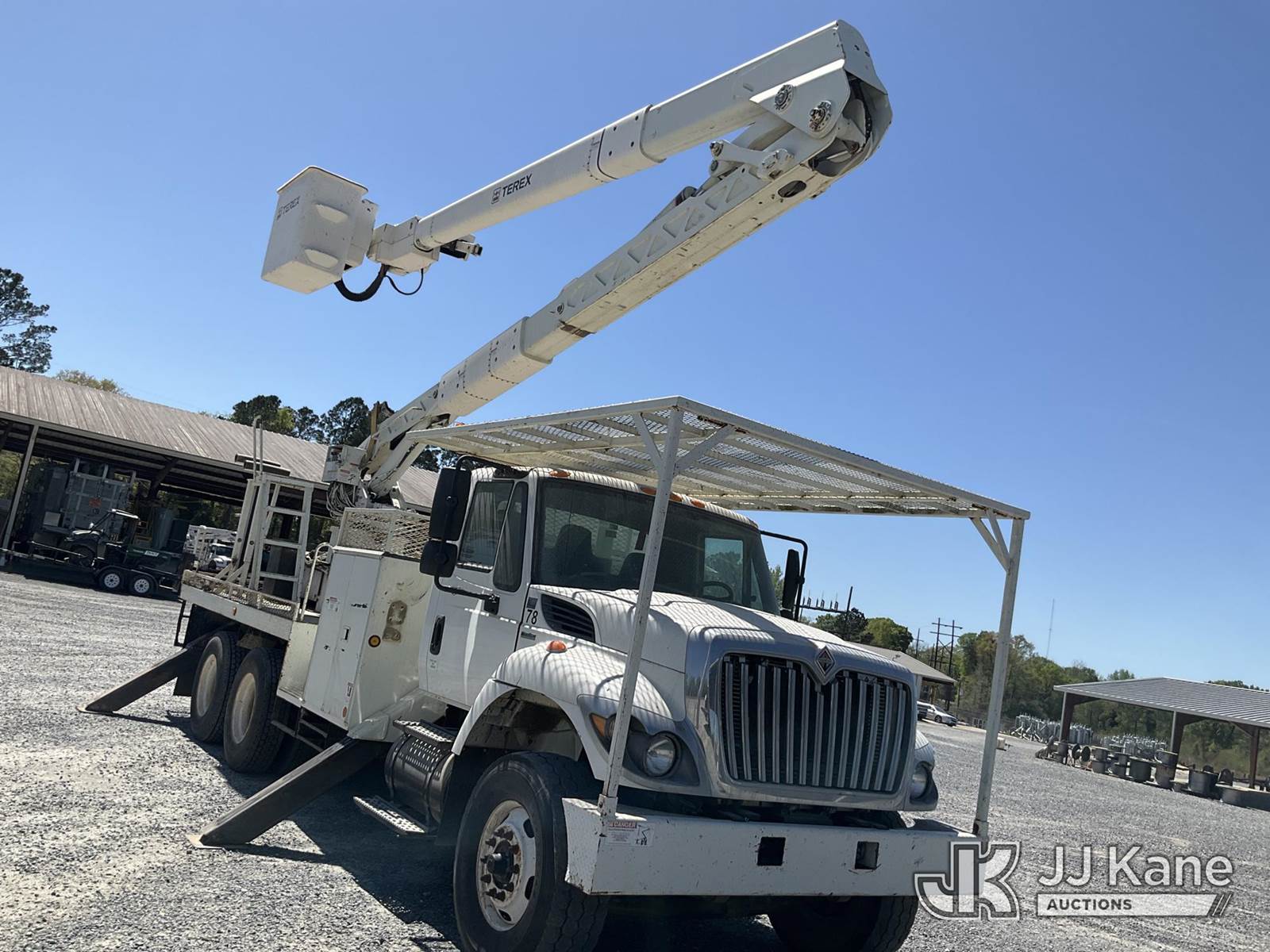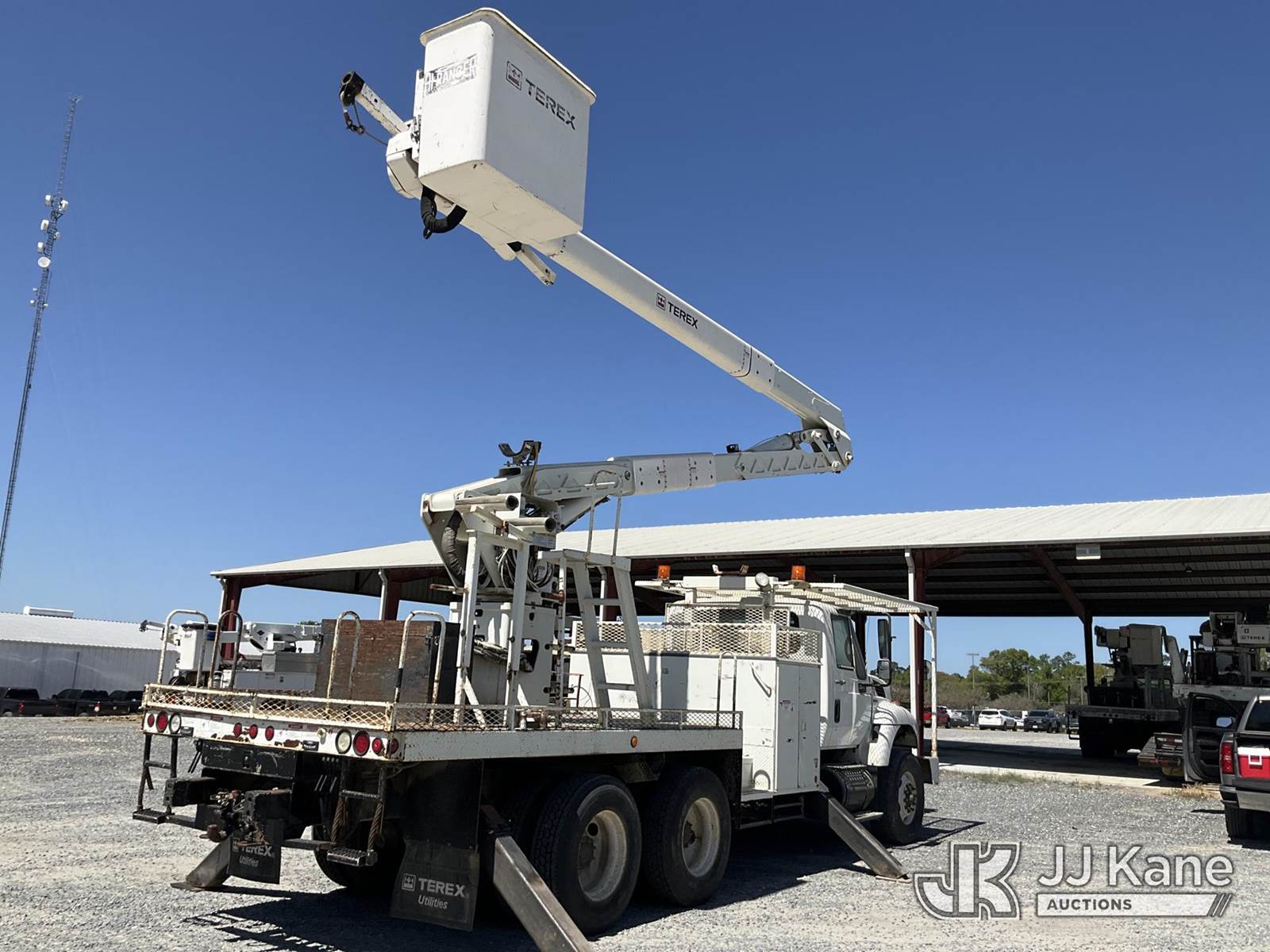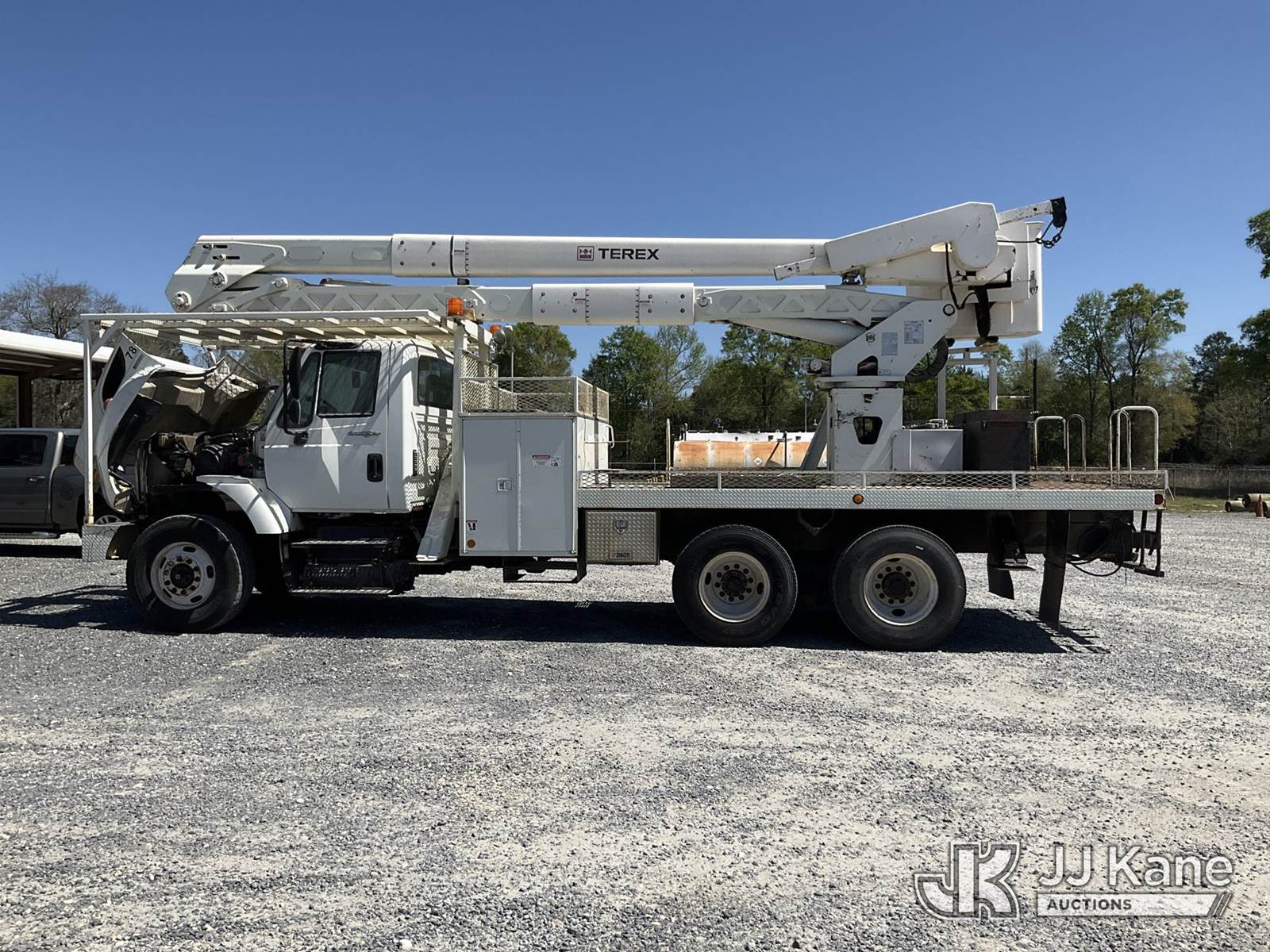 HiRanger TCX-55, 60 ft, Material Handling Bucket Truck s/n 2090639630, with two man bucket, rear mounted on 2010 International 7400 T/A Flatbed/Utility Truck, 7.6L diesel, 6X4, Auto, A/C, (189,838 miles) (Runs, Moves & Upper Operates) (Cracked Windshield) (Reads 15,338 hours) This is a Titled Item NOTE: This unit is being sold AS IS/WHERE IS via Timed Auction and is located in Deridder, LA. For pre-sale question please call Jordan Bane at (769) 231-2679. License # LA AB-154 (Manuals provided in cab) (Buyer is responsible for removal. Assistance by consignor or JJ Kane Auctions is not assured.)