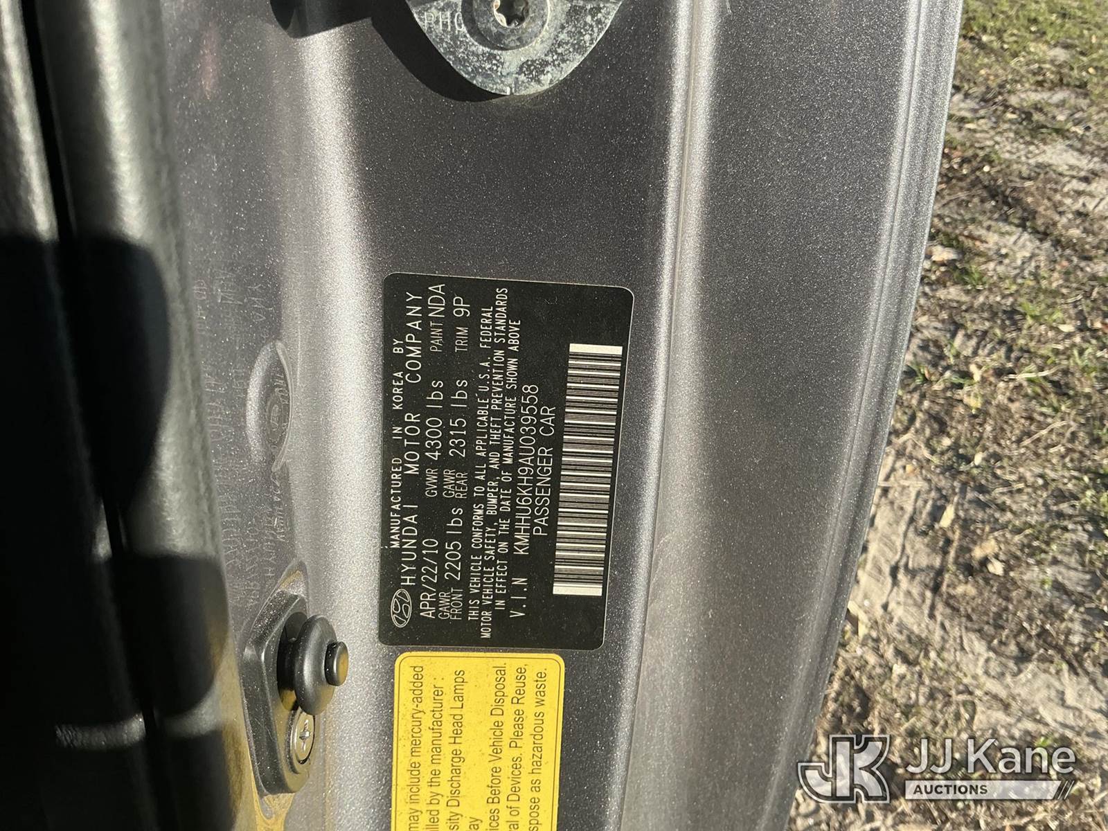 2010 Hyundai Genesis Coupe 2-Door Sport Coupe, 3.8L V6 DOHC 24V gas, RWD, Auto, A/C, (100,001 miles) (Runs & Moves) (Sunroof INOP) (FL Residents Purchasing Titled Items – tax, title & registration fees will be collected at the maximum rate of $400.00 under 25,999 and $800.00 for Over 26,000 and $250.00 trailers – Proof of insurance is mandatory; Out of State Residents Purchasing Title Items – tax will be collected based upon your state rate.) This is a Titled Item NOTE: This unit is being sold AS IS/WHERE IS via Timed Auction and is located in Thonotosassa, FL. Inspection & preview days for this unit are the 2 business days prior to the first day of items closing for this auction, item is located at 11720 N US 301 Thonotosassa, Fl 33592 and hours of operations are 8a-4p. For pre-sale questions, please contact Office Staff @ (813) 986-2485. (Buyer is responsible for removal. Assistance by consignor or JJ Kane Auctions is not assured.)