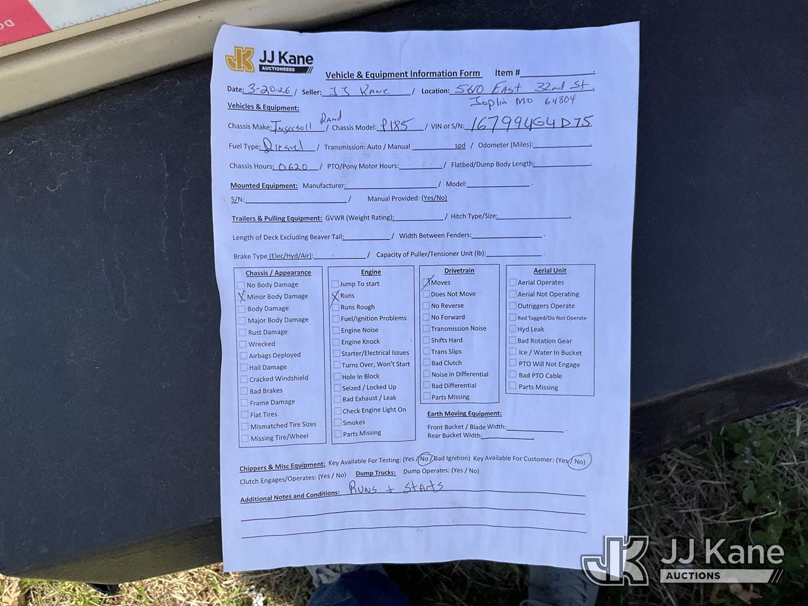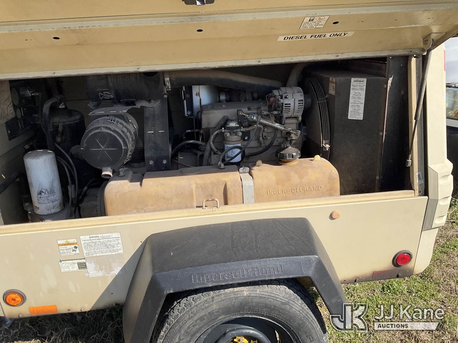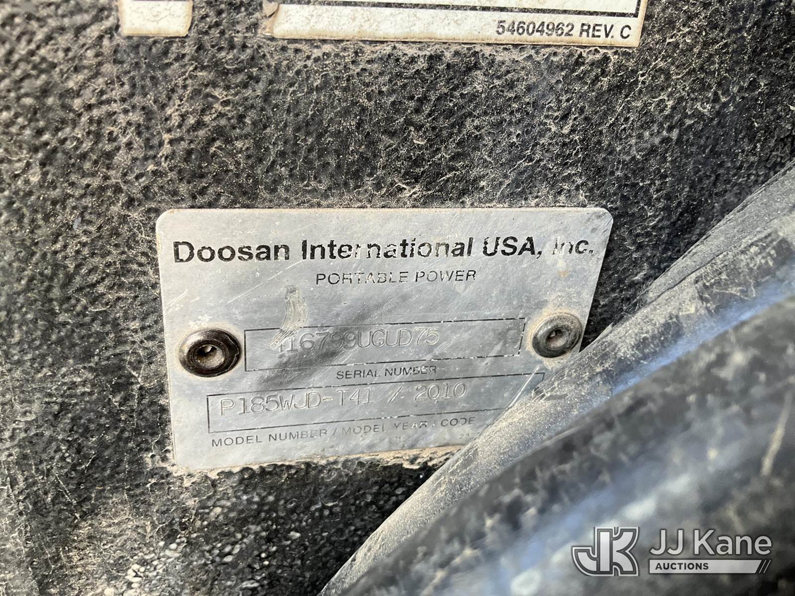 2010 Ingersoll Rand P185 Air Compressor, s/n 416799UGUD75, diesel, (Runs) (No Title) (Reads 620 hours) NOTE: This unit is being sold AS IS/WHERE IS via Timed Auction and is located in Joplin, MO. Inspection & preview days for this unit are by appointment only; please contact us at contact@jjkane.com or 84-Go-JJKane for more details. (Buyer is responsible for removal. Assistance by consignor or JJ Kane Auctions is not assured.)