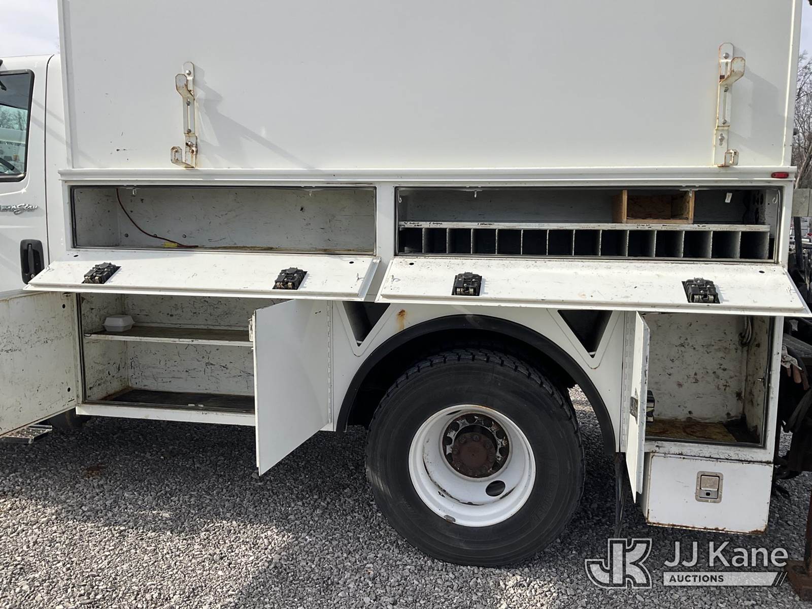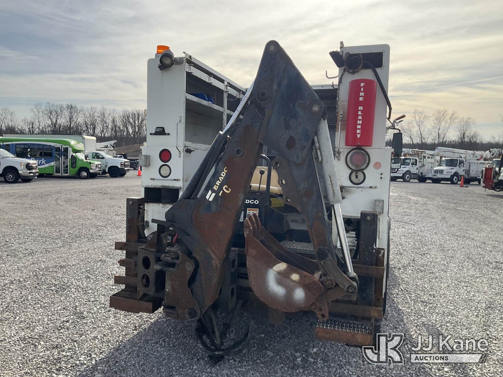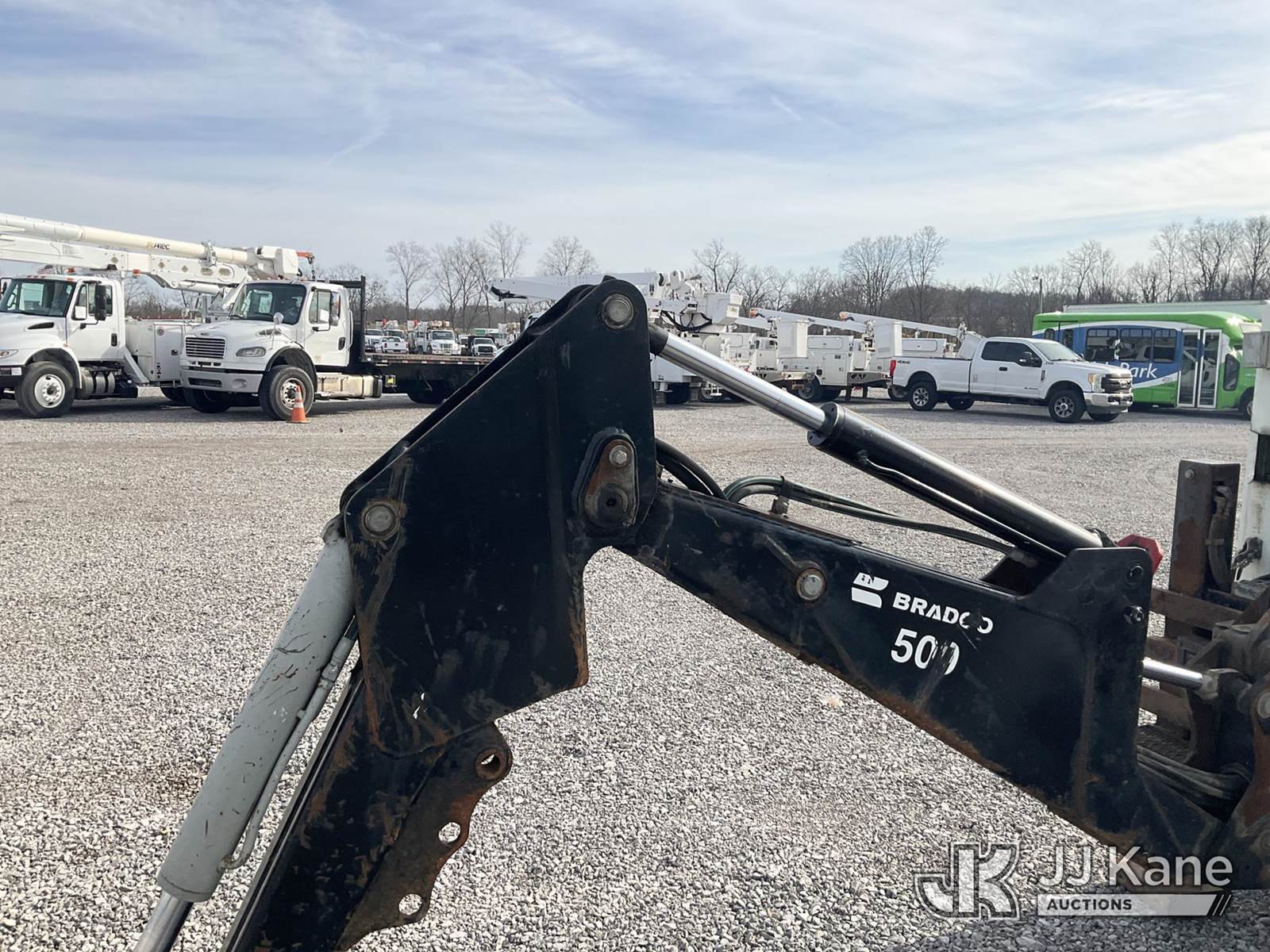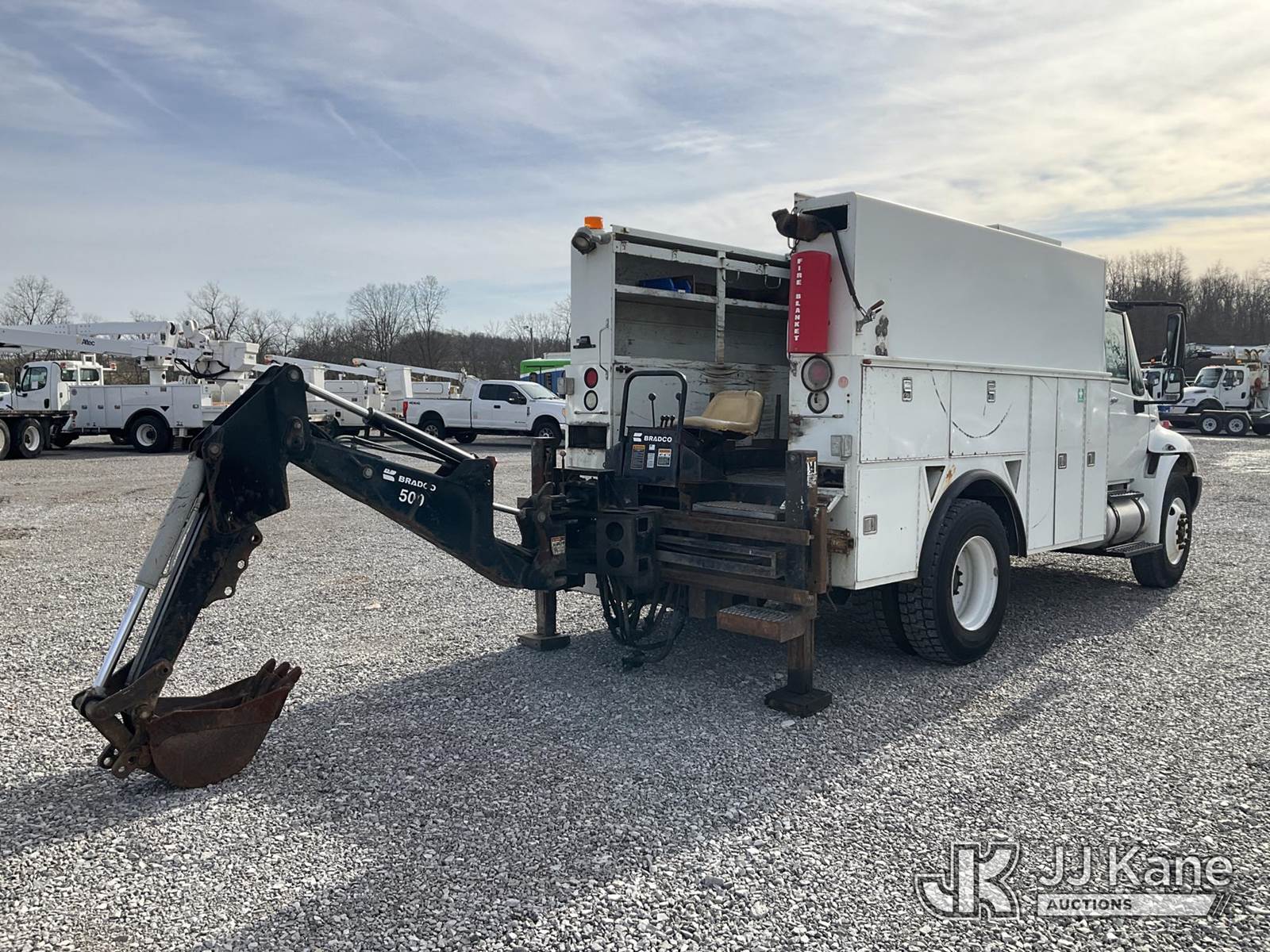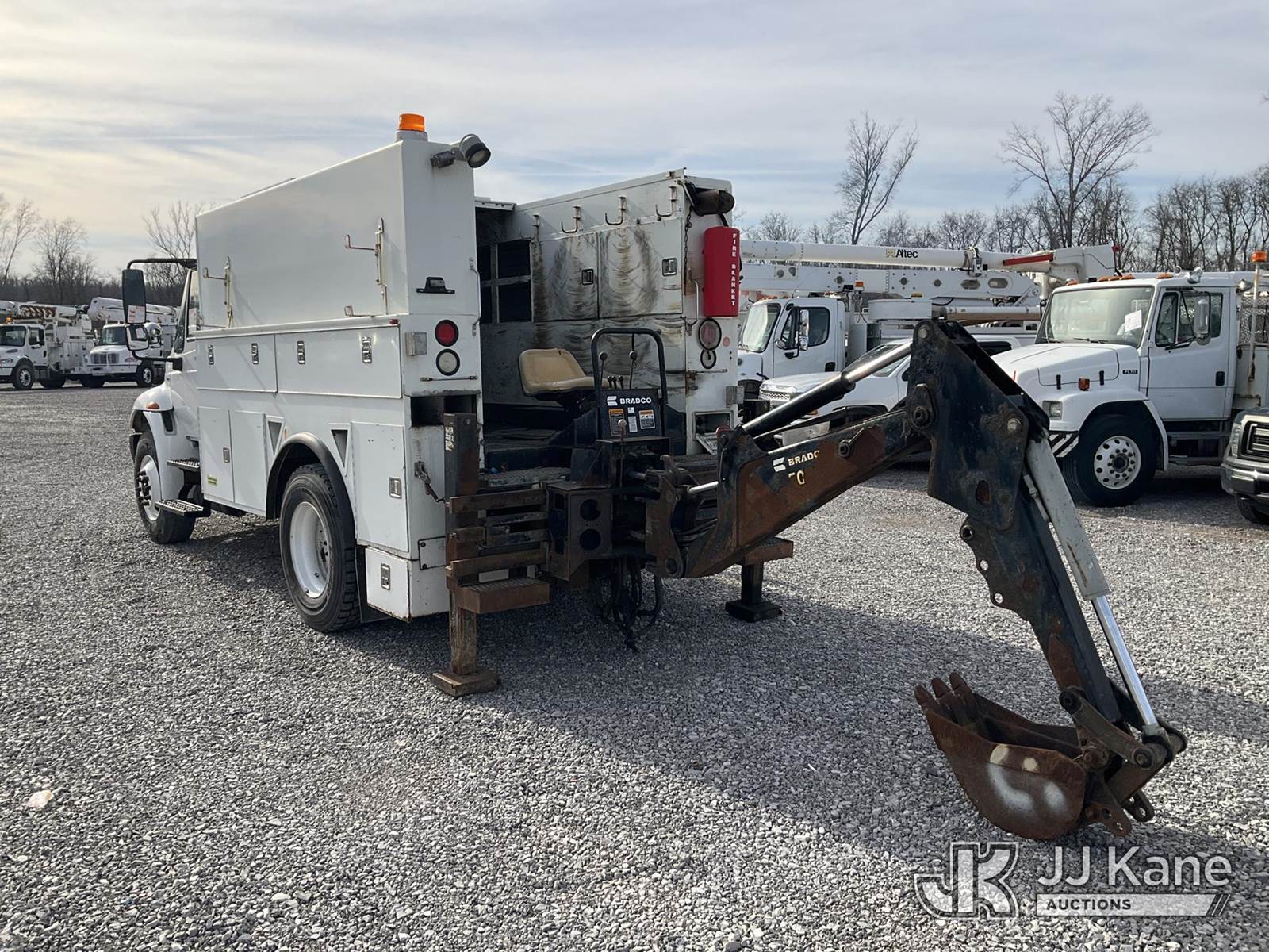 2010 International 4300 Utility Truck, 7.6L diesel, Auto, 4X2, A/C, with Bradco 500 backhoe attachment, Vanair system, (75,411 miles) (Runs, Moves & Backhoe Operates) (Reads 10,788 hours) This is a Titled Item NOTE: This unit is being sold AS IS/WHERE IS via Timed Auction and is located in Verona, KY. Inspection & preview days for this unit are the 2 business days prior to the first day of items closing for this auction, item is located at 2841 Verona-Mudlick Rd Ste B Verona, KY 41092 and hours of operations are 8a-4p. For pre-sale questions, please contact Office Staff @ (502) 612-5080. Auctioneer Michael Whitebread / License # 256617. (Buyer is responsible for removal. Assistance by consignor or JJ Kane Auctions is not assured.)
