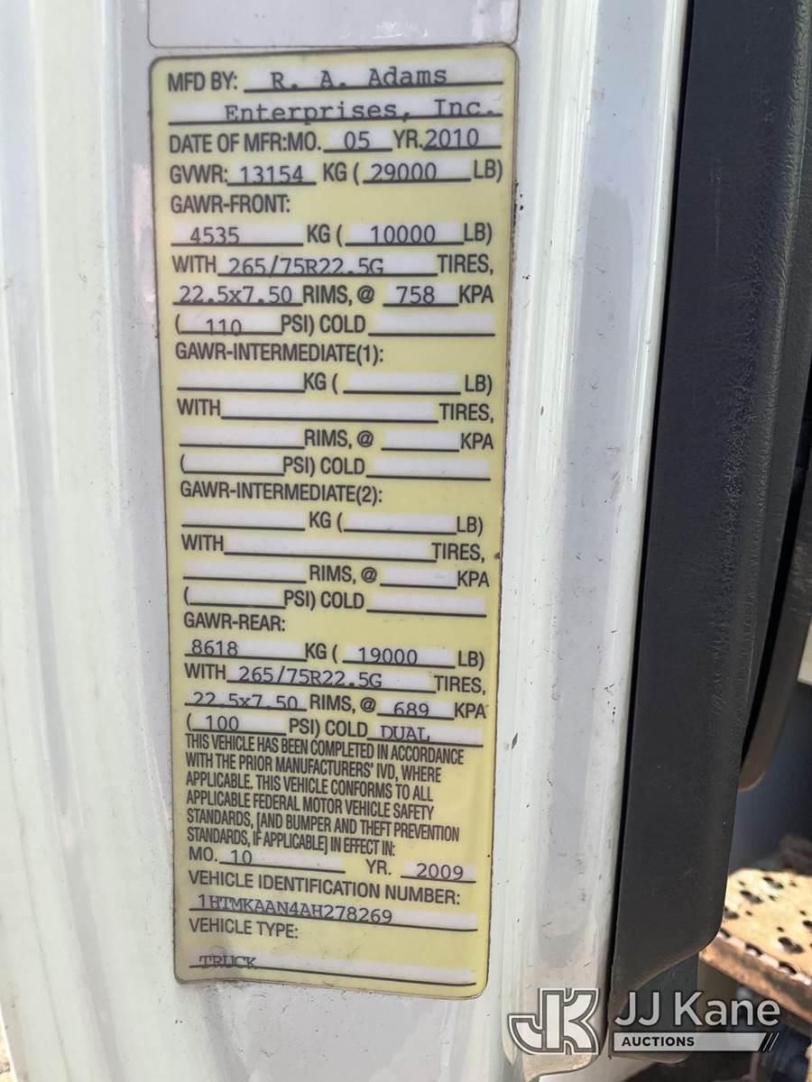 2010 International 4400 Dump Truck, 7.6L L6 DIESEL 4X2, Auto, (87,034 miles) (Runs, Moves, Dump Operates)(Boss Air Compressor-Does Not Operate) (Reads 8,286 hours) This is a Titled Item NOTE: This unit is being sold AS IS/WHERE IS via Timed Auction and is located in South Beloit, IL. Inspection & preview days for this unit are the 2 business days prior to the first day of items closing for this auction, item is located at 14354 Dearborn Ave South Beloit, IL and hours of operations are 8a-4p. For pre-sale questions, please contact Derek Eklund at (608) 904-0618 or (derek.eklund@jjkane.com). (Buyer is responsible for removal. Assistance by consignor or JJ Kane Auctions is not assured.)