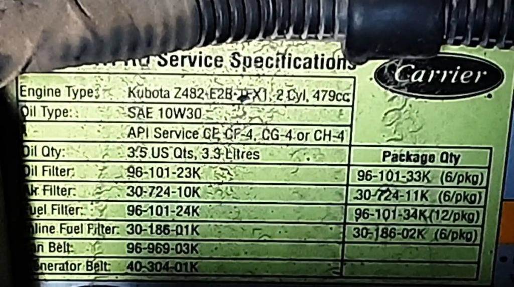 Carrier ComfortPro PC6000 APU w/ Kubota Z482-E2B-TFX1 Engine From 2010 International ProStar. Carrier S/N MXF98204626. Missing Aluminum Cover.