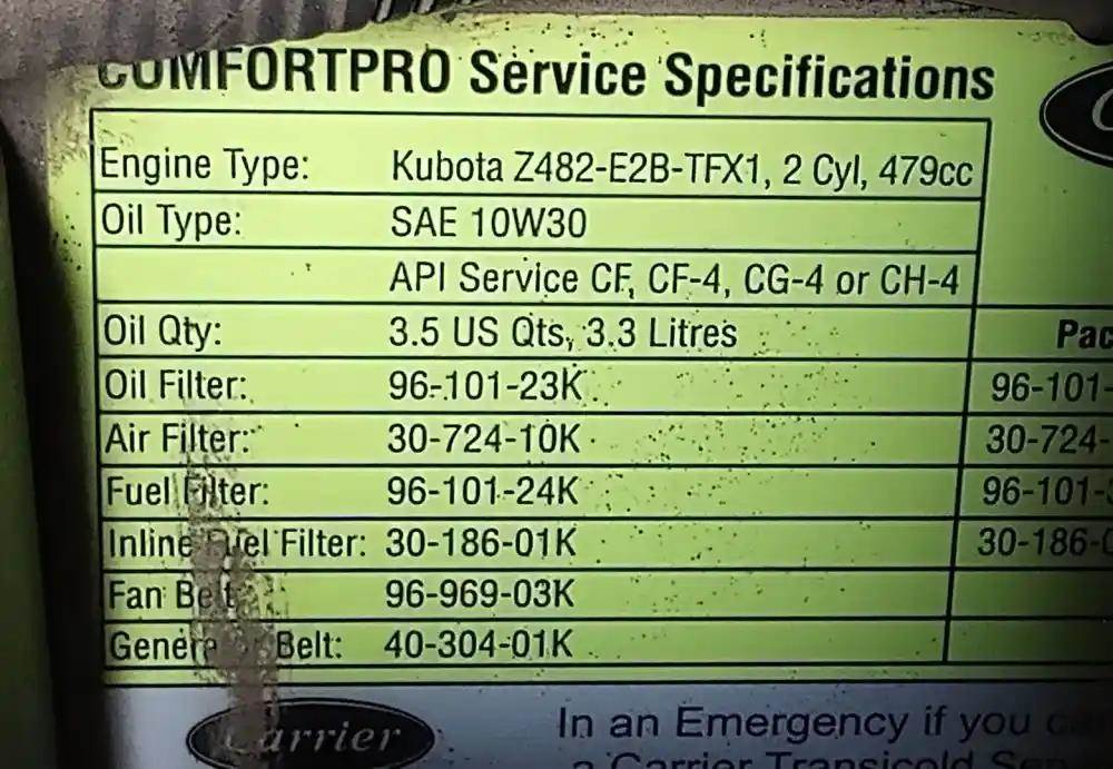 Carrier ComfortPro PC6000 APU w/ Kubota Z482-E2B-TFX1 Engine From 2010 International ProStar. Carrier S/N MXE98203656.