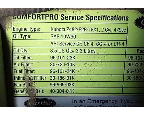 Carrier ComfortPro PC6000 APU w/ Kubota Z482-E2B-TFX1 Engine From 2010