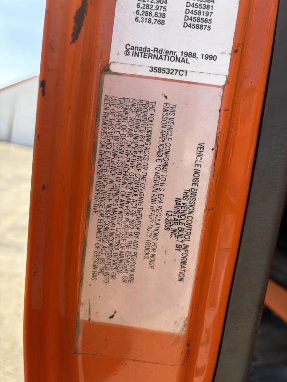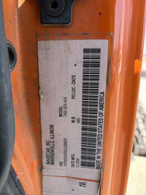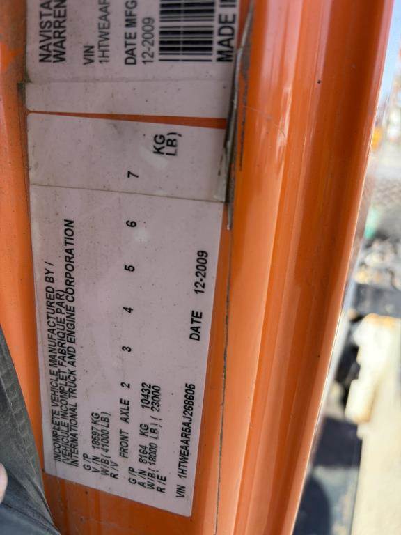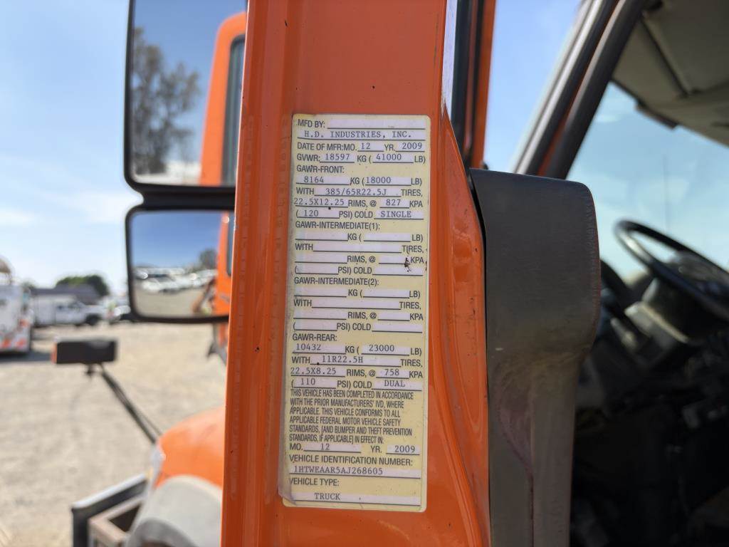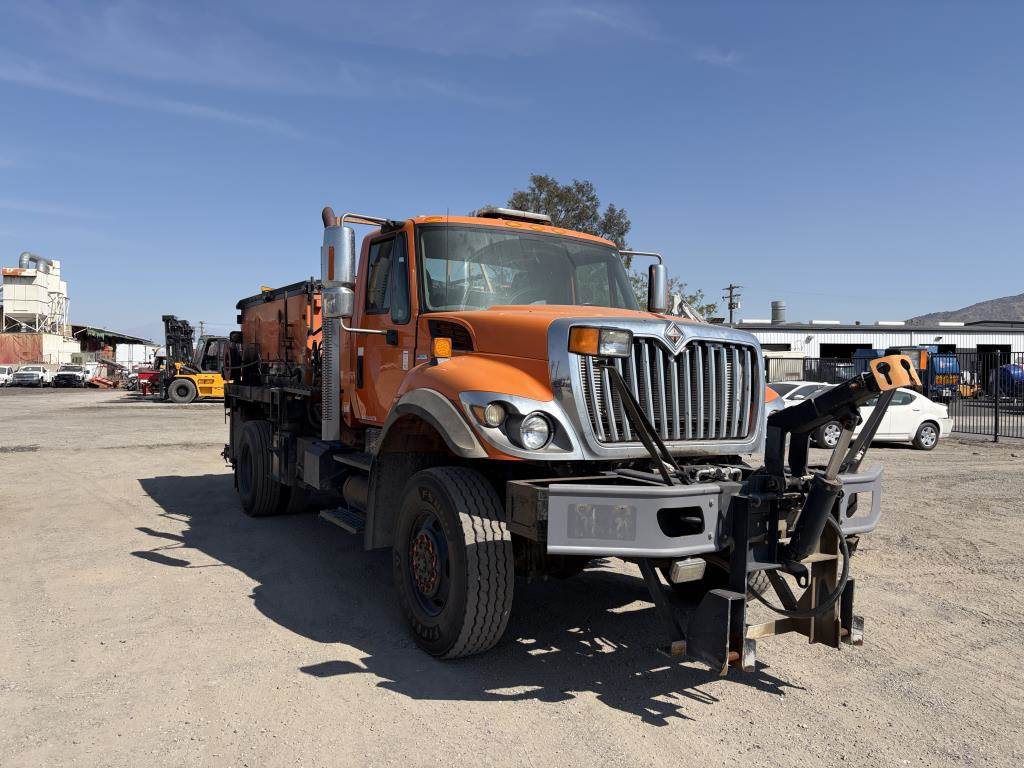 VIN: 1HTWEAAR5AJ268605 MaxxForce GDT 300 Diesel, Eaton Fuller 6 Speed Manual, 41,000Lbs GVWR, 4X4, Front Axle: 18,000Lbs, Rear Axle: 23,000Lbs, Combined Rear Axle: 44,000Lbs, AC, Heat, AM/FM, Cruise Control, Wet Kit, Air Brakes, Engine/Exhaust Brake, Differential Lock, Spring Suspension, 22.5" Tire Size, Asphalt Kettle, Conveyor, Rear Sprayers, Reel, Hose and Nozzle Gun, Underbody Compartment Odometer Reading: 157,646 Disclaimer: Mileage and hours are visually observed and not verified. 18% Buyer's Premium applies to this item.