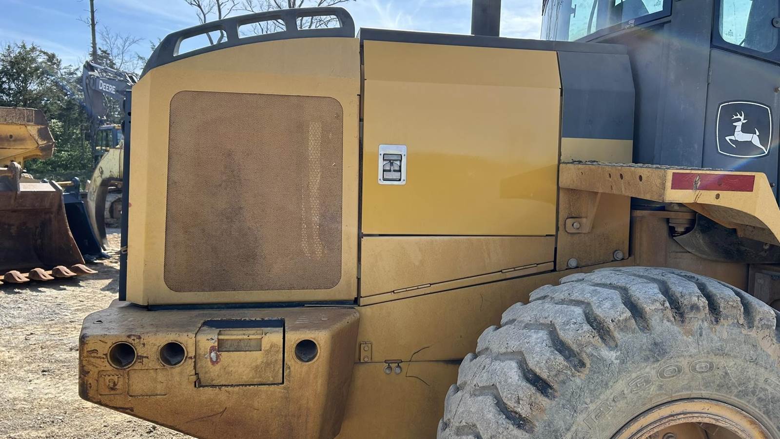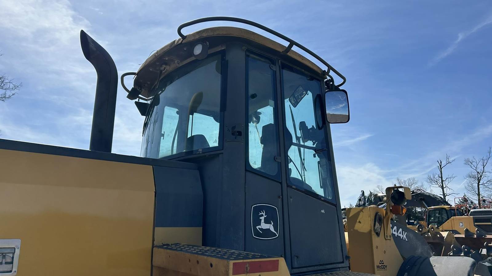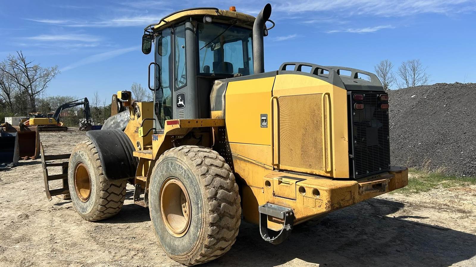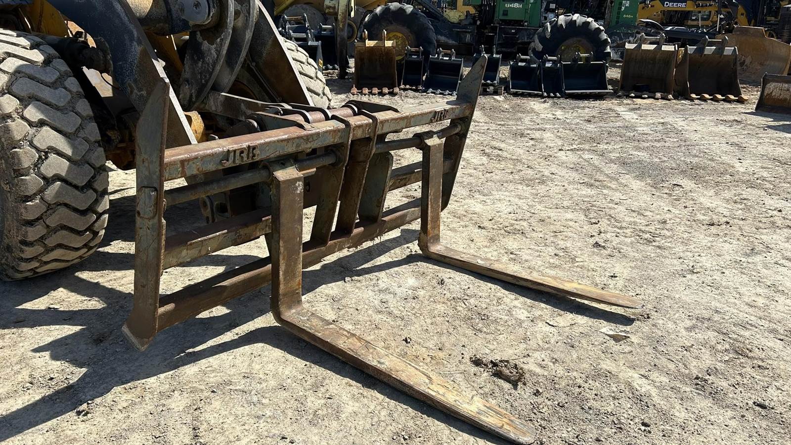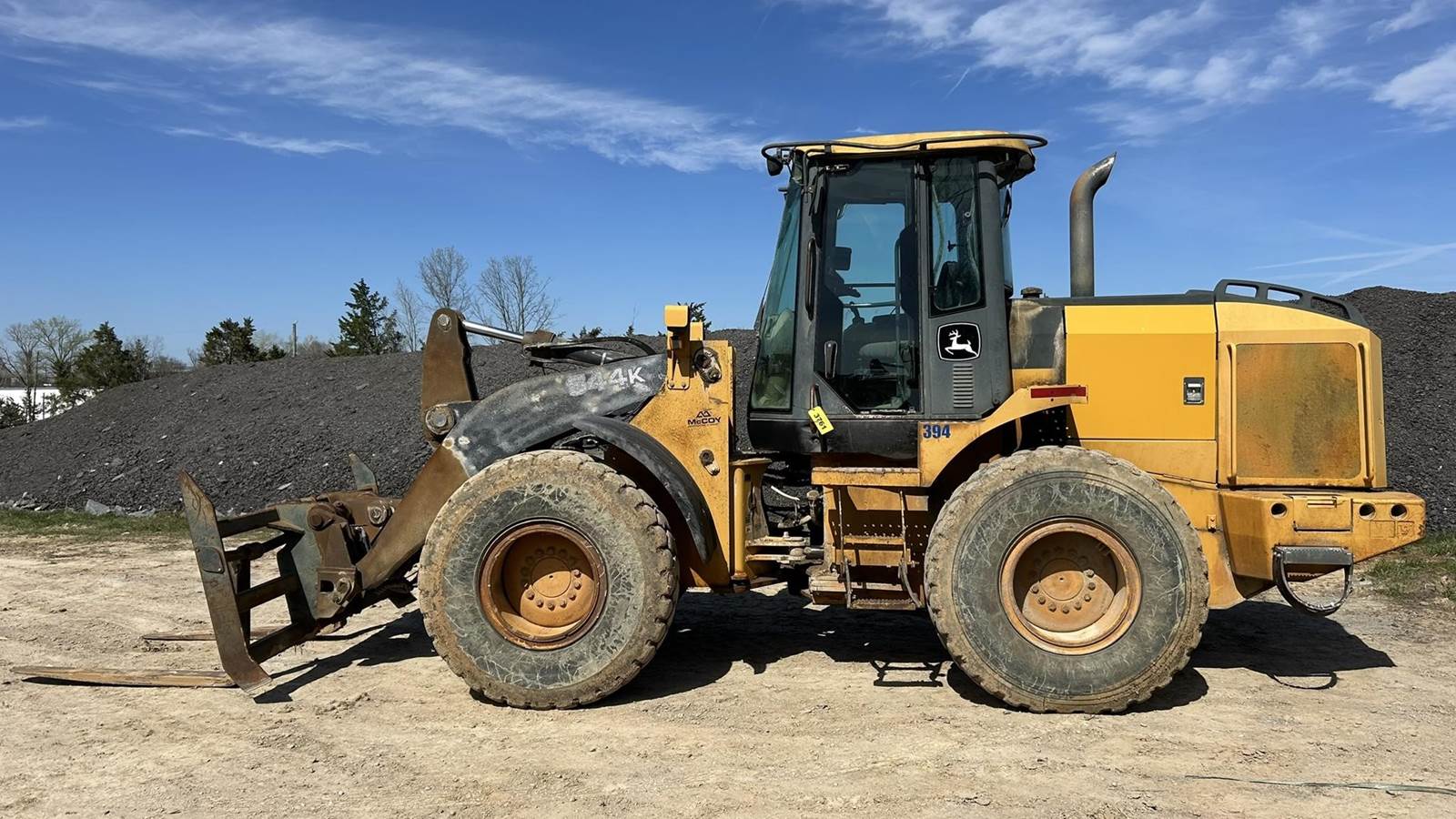 John Deere 6 Cylinder Turbo Diesel Engine, Powershift Transmission, Differential Lock, Approx. 56" Sliding Forks, Hydraulic Quick Coupler, EROPS, Joystick Control, Suspension Seat, Heat, AC, Work Lights, Ride Control, 20.5R25 Tires