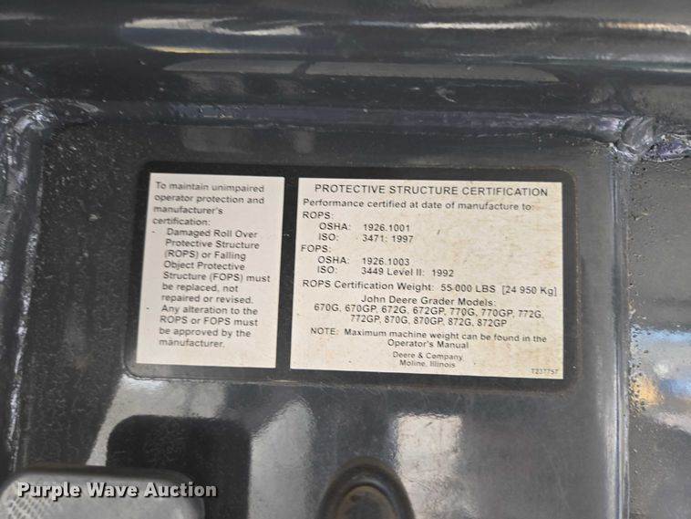2010 John Deere 872GP motor grader