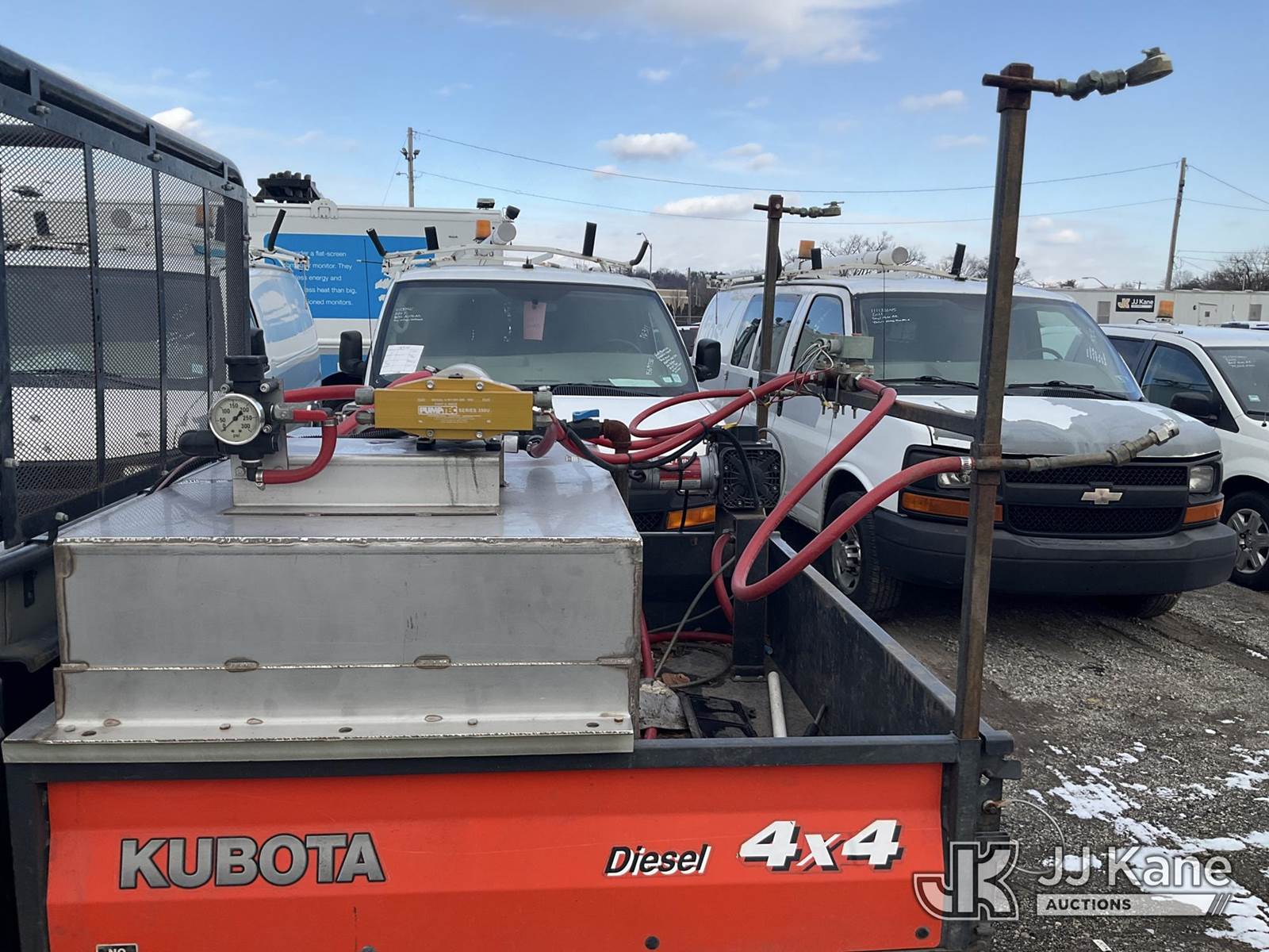 2010 Kubota 900 4x4 ATV, UTV, Side by Side, s/n A5KB1FDAEAG0A7763, Kubota Auto, diesel, with UTV Track Kit, Spray Unit (Condition Unknown), (No Title) (Jump To Start, Runs & Moves, Shut Off Solenoid Not Working) (Reads 201 hours) NOTE: This unit is being sold AS IS/WHERE IS via Timed Auction and is located in Plymouth Meeting, PA. Inspection & preview days for this unit are the 2 business days prior to the first day of items closing for this auction, item is located at 1402 Conshohocken Rd Plymouth Meeting, PA 19462 and hours of operations are 8a-4p. For pre-sale questions, please contact Bruce Thomas @ (267) 887-0392 or bruce.thomas.jr@jjkane.com. (Buyer is responsible for removal. Assistance by consignor or JJ Kane Auctions is not assured.)