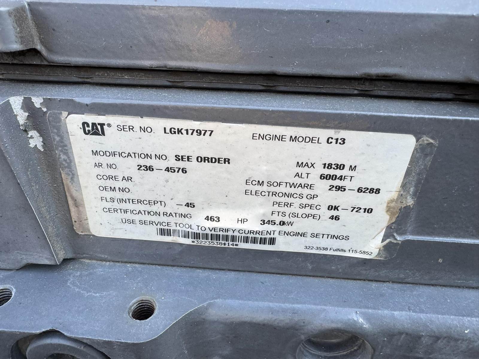 CAT C13 Acert Diesel Engine, 6 Cylinder, 462HP, Pre Def, Seperator Hours Shown: 2700, Variable Speed, Heat, A/C, Radio, Working Lights, Track Size 119" Length 36" Width, Rear Tires 500/85R28