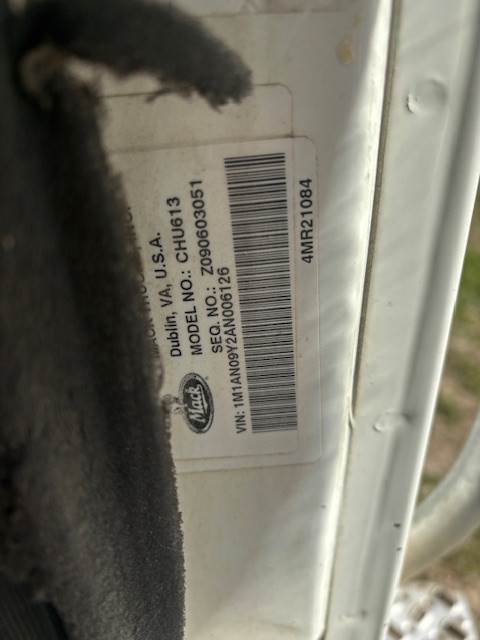 2010 Mack Pinnacle CHU 613, Daycab, MP 8 Maxidine engine, 445 HP, Camelback suspension, Eaton 10 speed Manual Transmission,12,000 F/A, 20,000 R/A, 23257 GVWR, 255 inch wheelbase, 5217 Hours, 293,159 miles, A/C, Aluminum Wheels, Power Door locks, Headache Rack not included.