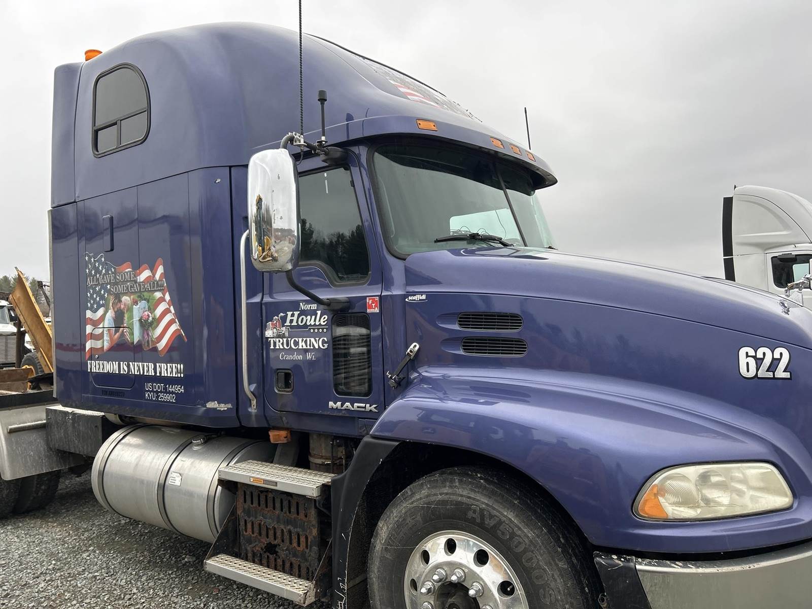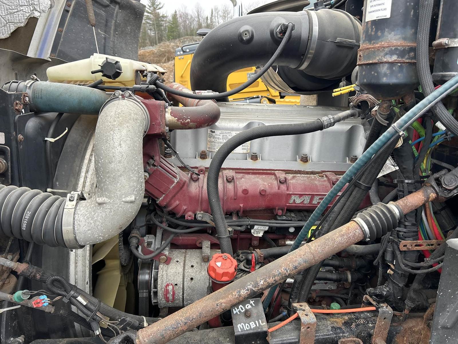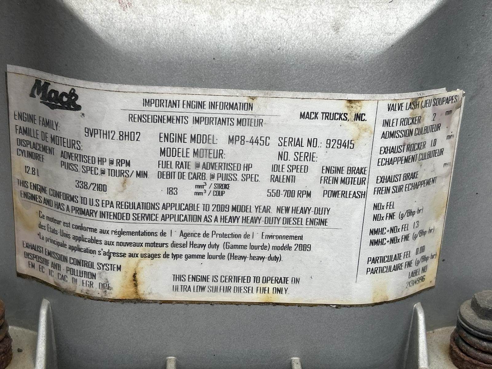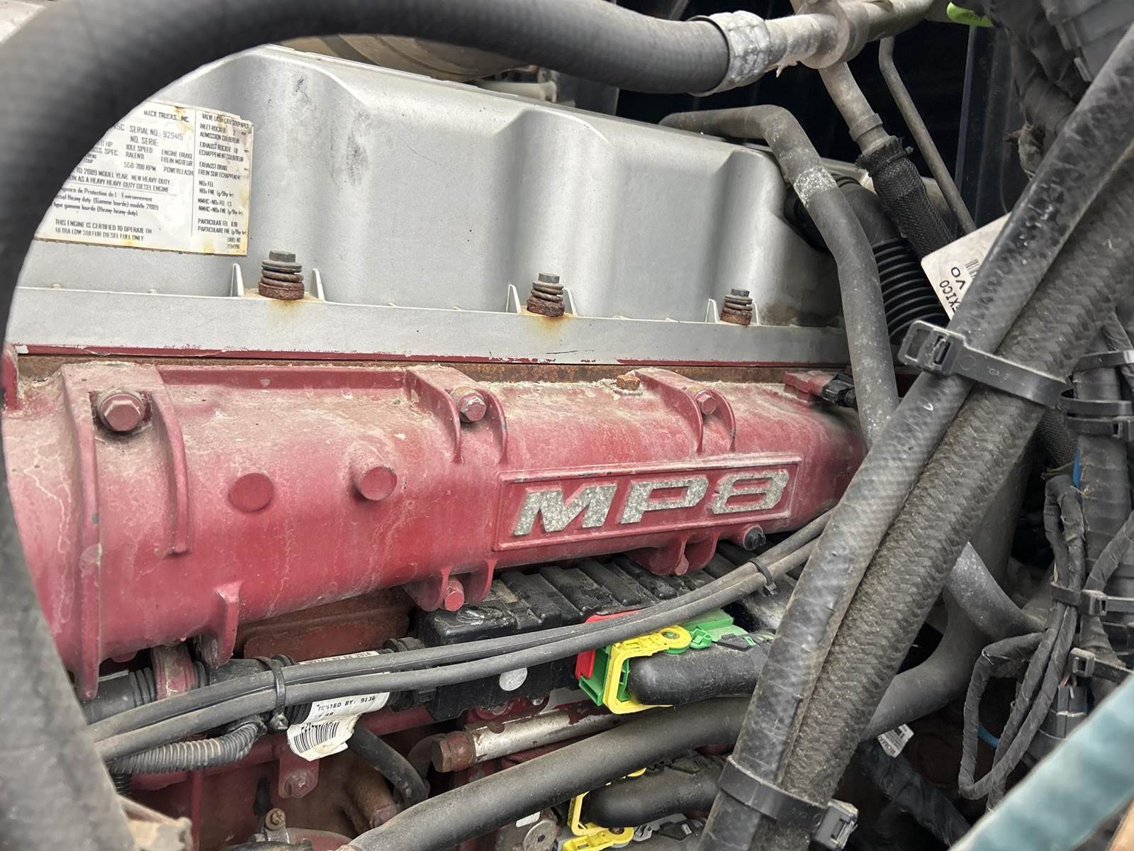 Mack MP8-445C Turbo Diesel Engine, Eaton Fuller 13 Speed Manual Transmission, GVWR: 52000LB, 12000LB Front Axle, Air Ride, Inter-Axle Lock, Engine Brake, PTO, Wet Kit, Aluminum Headache Rack, Air Release Fifth Wheel Slide, Air Ride Seats, Power Windows, Power Mirrors, Power Locks, Heat, A/C, Radio, Cruise Control, Double Bunk, Rear Climate Controls, Storage Cabinets, Mini Refrigerator, Privacy Curtain, Full Aluminum Rims, 11R22.5 Tires