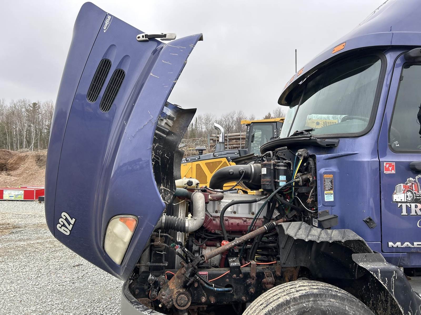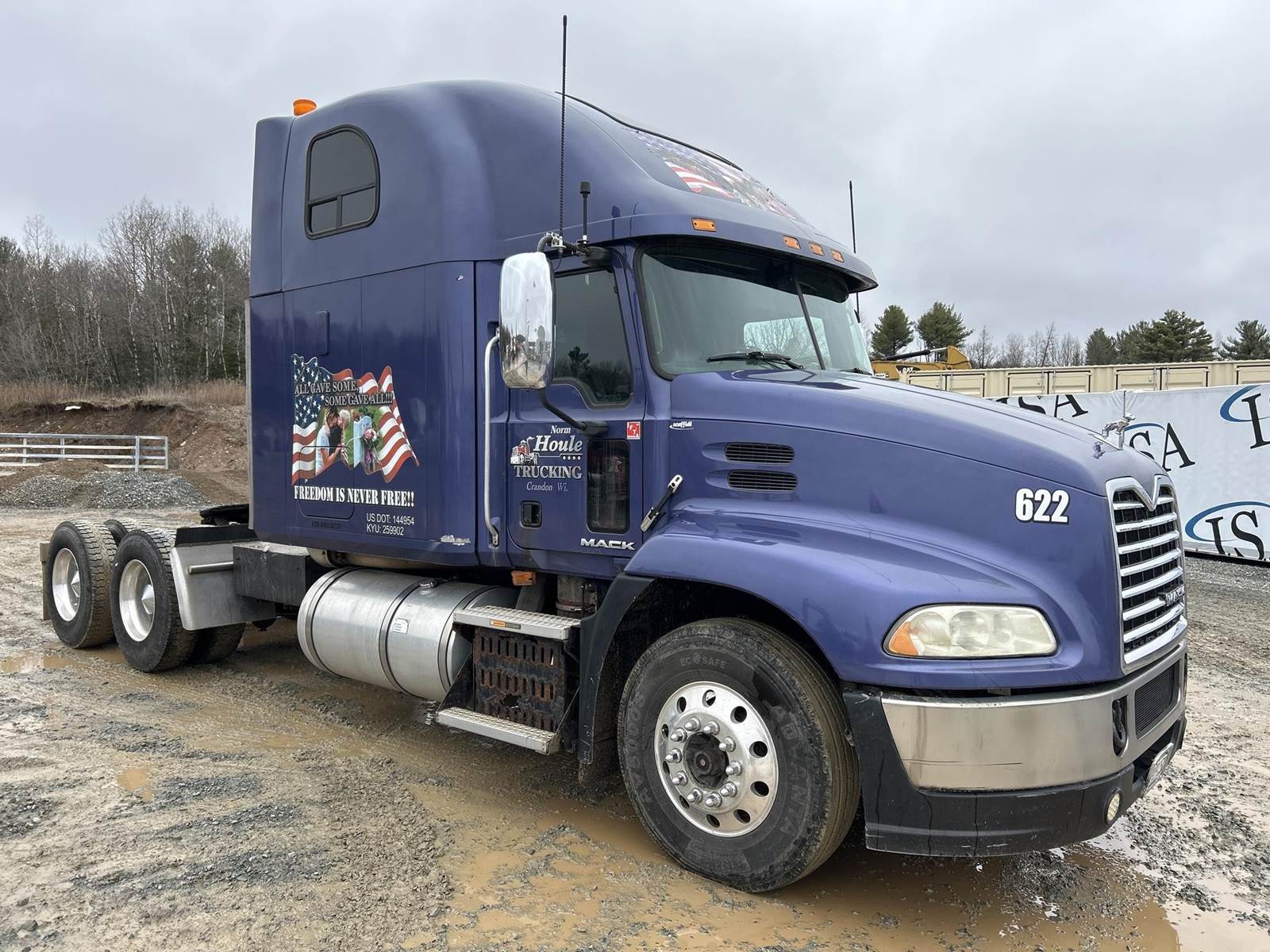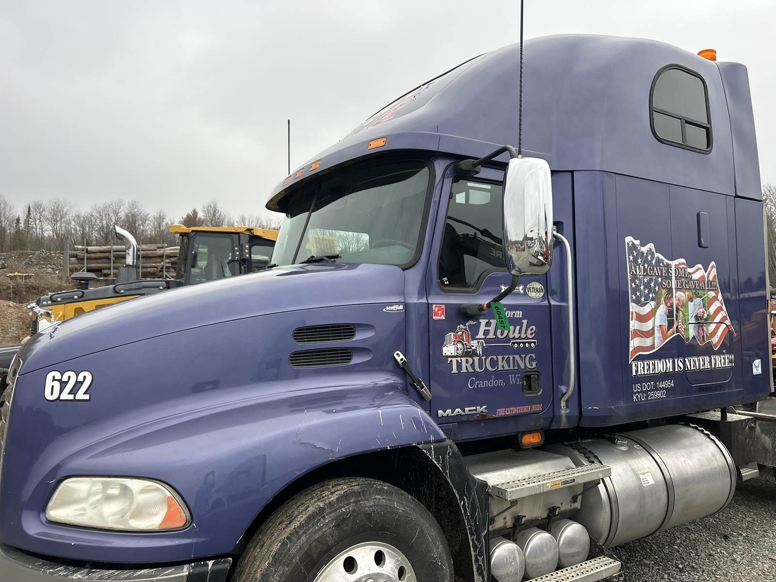 Mack MP8-445C Turbo Diesel Engine, Eaton Fuller 13 Speed Manual Transmission, GVWR: 52000LB, 12000LB Front Axle, Air Ride, Inter-Axle Lock, Engine Brake, PTO, Wet Kit, Aluminum Headache Rack, Air Release Fifth Wheel Slide, Air Ride Seats, Power Windows, Power Mirrors, Power Locks, Heat, A/C, Radio, Cruise Control, Double Bunk, Rear Climate Controls, Storage Cabinets, Mini Refrigerator, Privacy Curtain, Full Aluminum Rims, 11R22.5 Tires