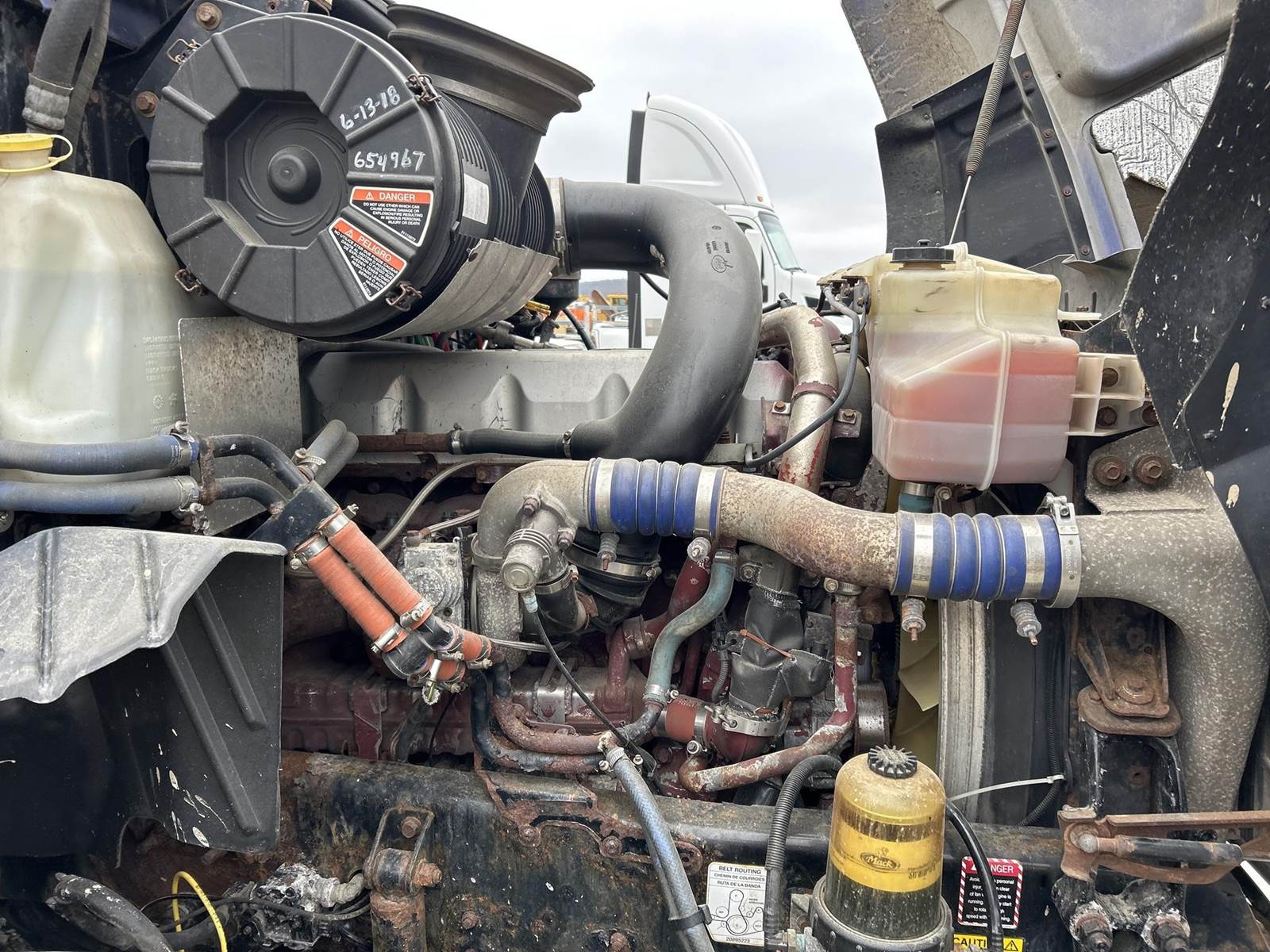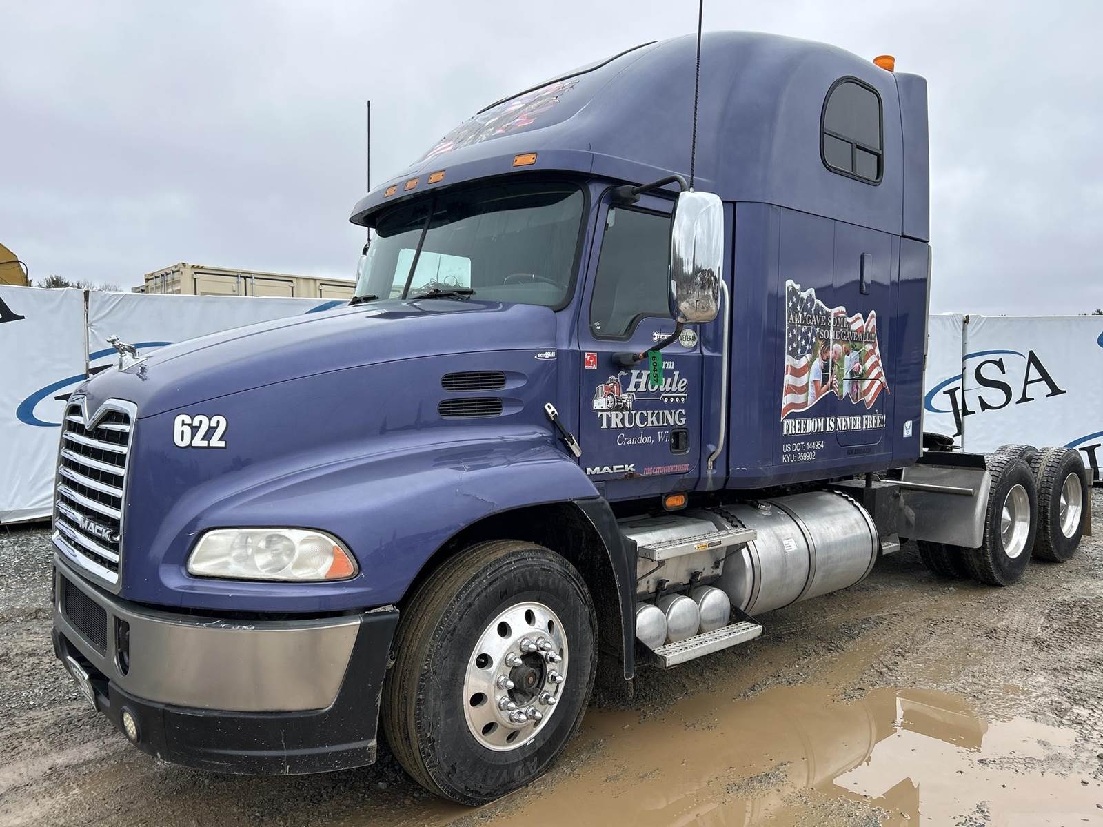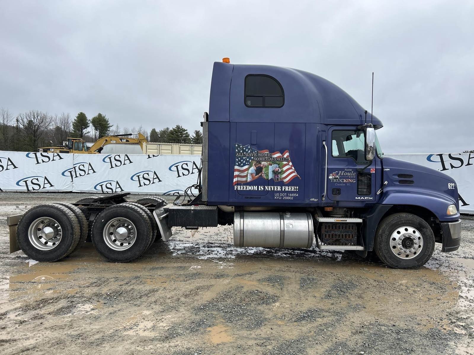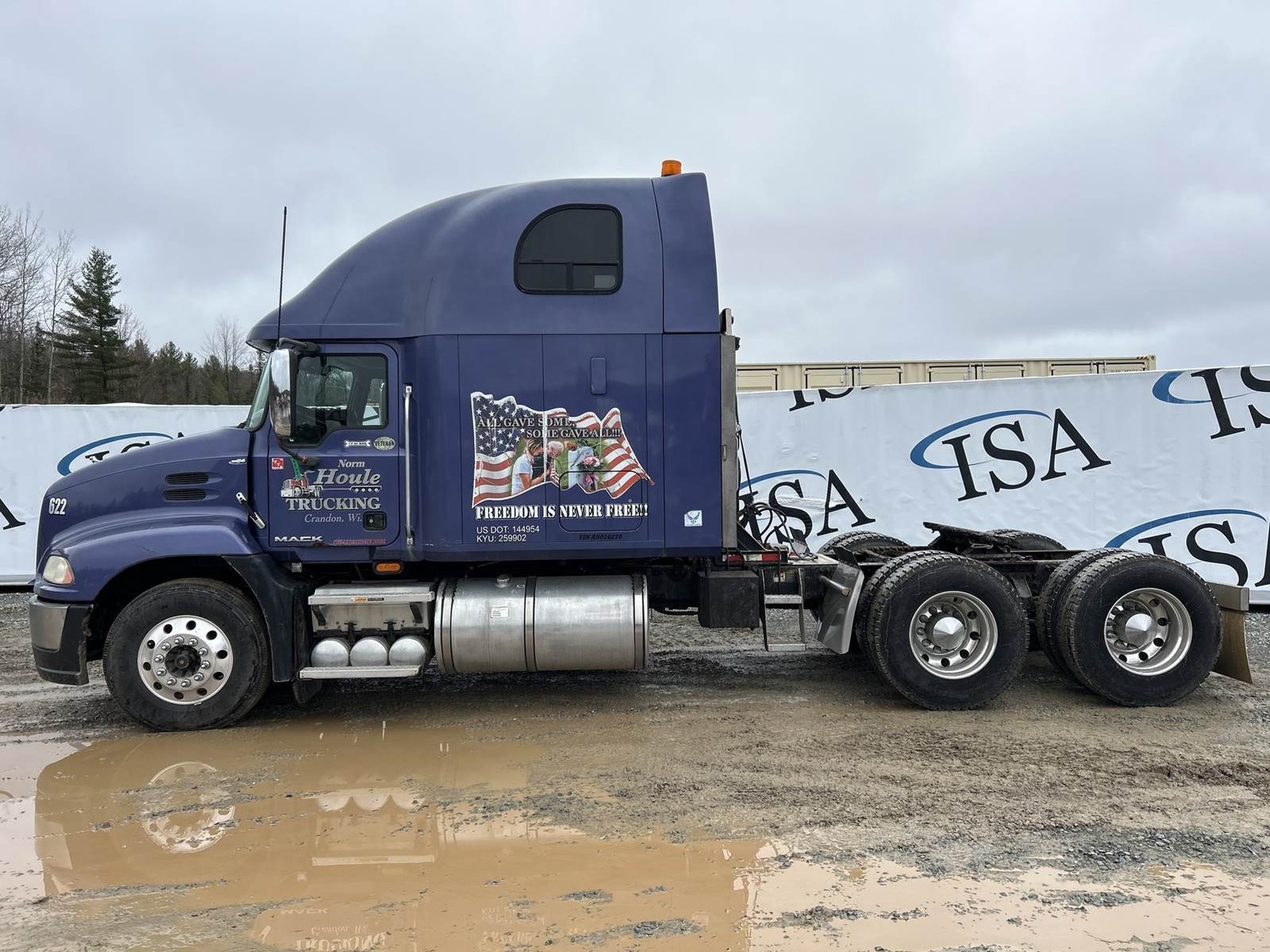 Mack MP8-445C Turbo Diesel Engine, Eaton Fuller 13 Speed Manual Transmission, GVWR: 52000LB, 12000LB Front Axle, Air Ride, Inter-Axle Lock, Engine Brake, PTO, Wet Kit, Aluminum Headache Rack, Air Release Fifth Wheel Slide, Air Ride Seats, Power Windows, Power Mirrors, Power Locks, Heat, A/C, Radio, Cruise Control, Double Bunk, Rear Climate Controls, Storage Cabinets, Mini Refrigerator, Privacy Curtain, Full Aluminum Rims, 11R22.5 Tires