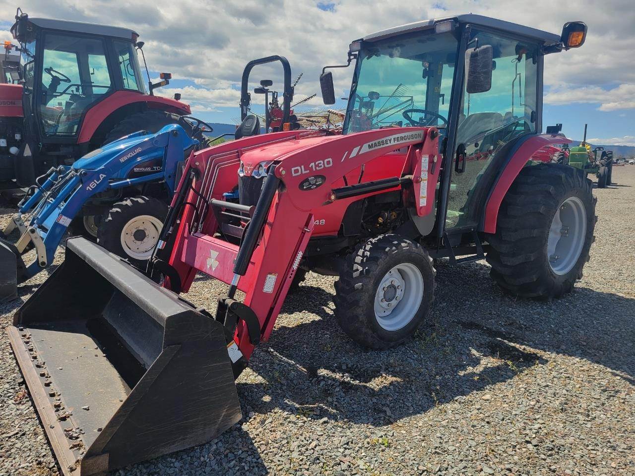 38 PTO HP, 47.1 ENG HP, 4X4, CAB, HEAT AND A/C, RADIO, BLOCK HEATER, DYNA QPS TRANSMISSION, 1 REAR REMOTE, DL130 LOADER, SKID STEER QUICK ATTACH, 72" HD BUCKET W/ CUTTING EDGE, 943 HOURS
