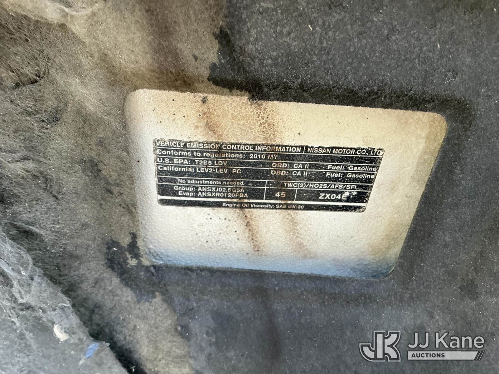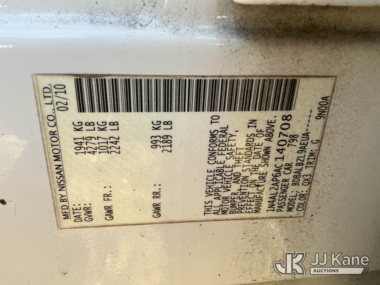 2010 Nissan Altima 4-Door Sedan, 2.5L L4 DOHC 16V gas, FWD, Auto, A/C, (190,162 miles) (Runs & Moves) (Service Engine Soon Light On) (FL Residents Purchasing Titled Items – tax, title & registration fees will be collected at the maximum rate of $400.00 under 25,999 and $800.00 for Over 26,000 and $250.00 trailers – Proof of insurance is mandatory; Out of State Residents Purchasing Title Items – tax will be collected based upon your state rate.) This is a Titled Item NOTE: This unit is being sold AS IS/WHERE IS via Timed Auction and is located in Thonotosassa, FL. Inspection & preview days for this unit are the 2 business days prior to the first day of items closing for this auction, item is located at 11720 N US 301 Thonotosassa, Fl 33592 and hours of operations are 8a-4p. For pre-sale questions, please contact Office Staff @ (813) 986-2485. (Buyer is responsible for removal. Assistance by consignor or JJ Kane Auctions is not assured.)