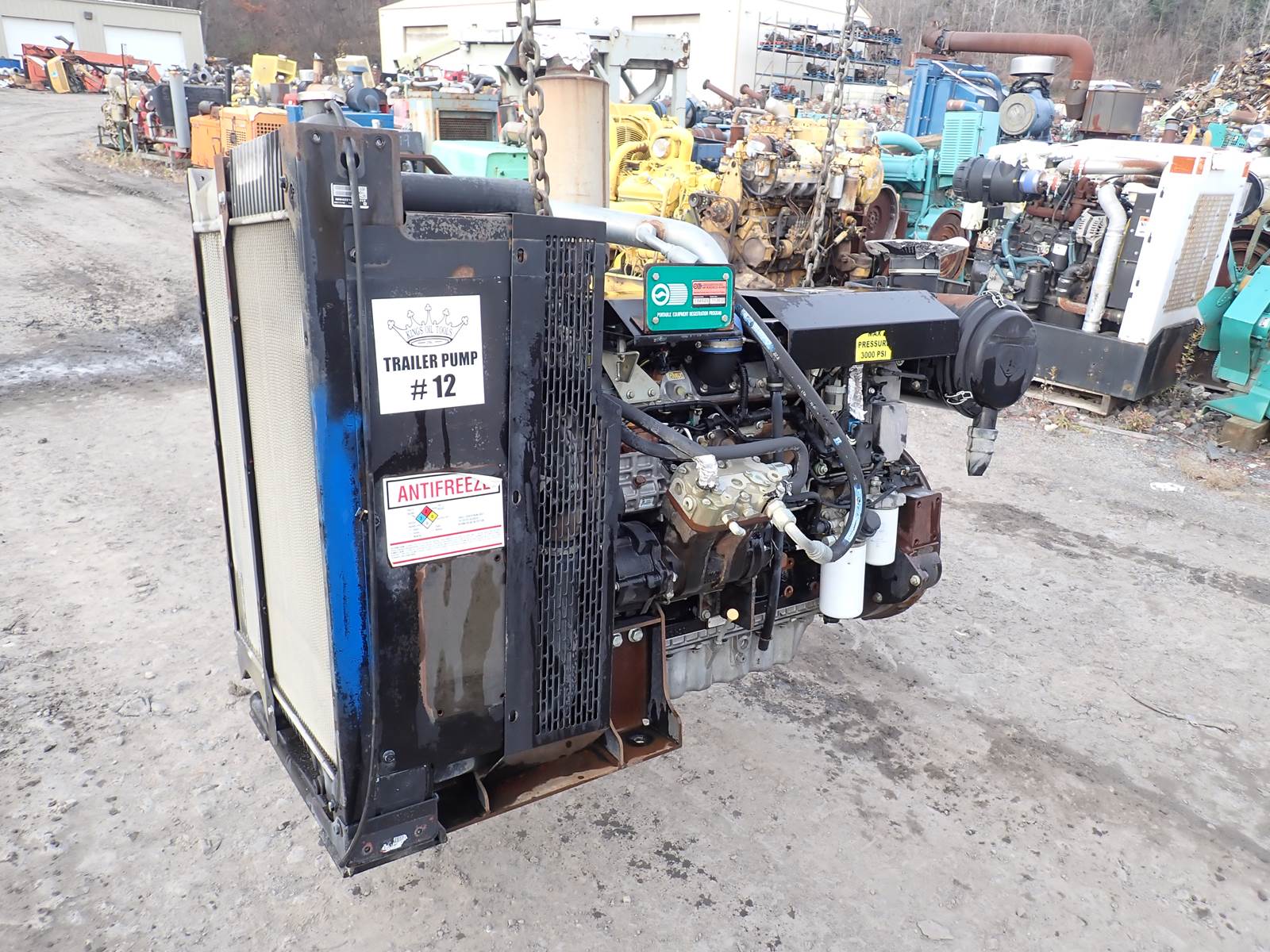 2010 Perkins 1106D-E66TA diesel engine, PJ38424 build spec, approximately 334 HP at 2200 RPM rating, PRE EMISSIONS, common rail fuel system, same as MOST CAT C6.6 industrial & construction engines, EPA family # APKXL06.6PJ1, 2140 TOTAL original hours w/ 831 idle -- ENGINE IS LIKE NEW -- BARELY BROKEN IN -- INSANELY LOW TIME ON THIS UNIT. Comes complete as you see it w/ radiator & accessories -- has front mounted auxiliary drive w/ compressor, fully dressed unit. Test ran excellent, no blowby or smoke, 58 PSI oil pressure at cold idle, 65 PSI at 1200 RPM. DON'T MISS IT -- AMONG THE NICEST YOU'LL SEE OUTSIDE OF NEW !!