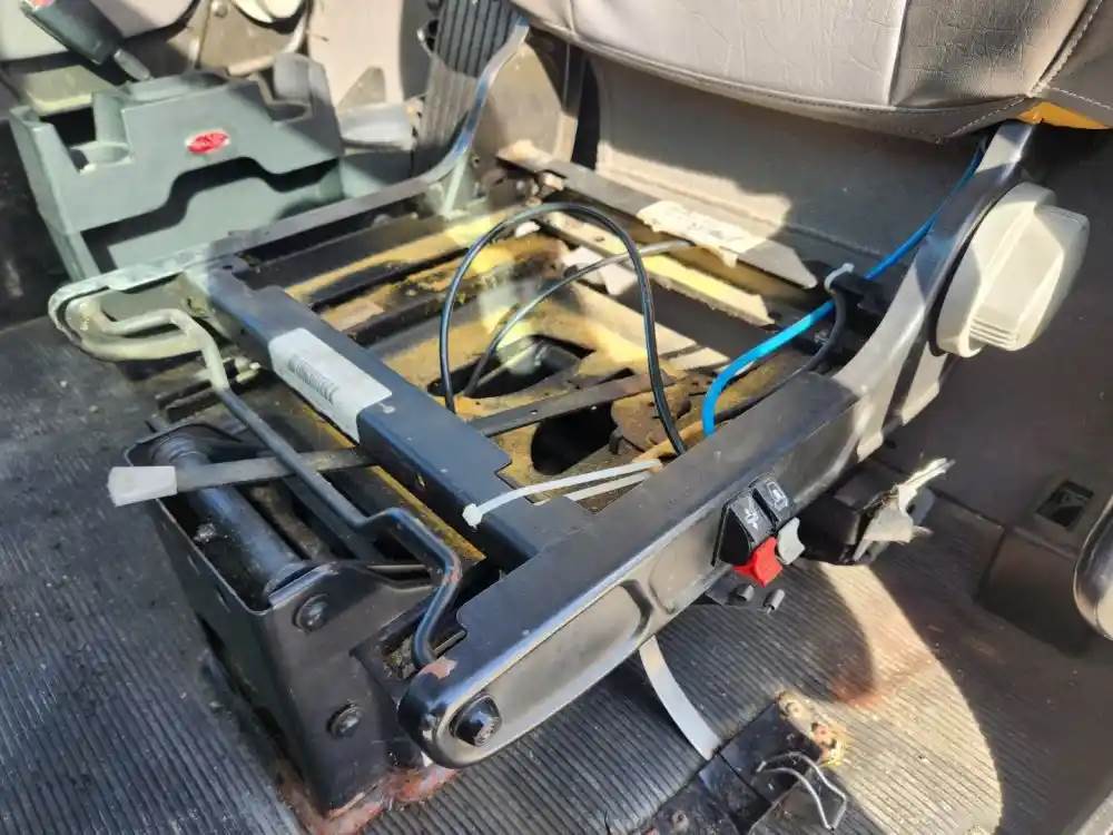 (Used) 2010 Peterbilt 337, SEAT- Side: Driver Left Side, Color: Grey, Material: Vinyl, Type: Air Slide, Missing Pieces!! Reference images for condition, For more information about this item, give us a call. We ship Worldwide! (CRG HEAVY TRUCK PARTS) 929 W PULASKI HWY ELKTON, MD 21921, Seat Make: Peterbilt
