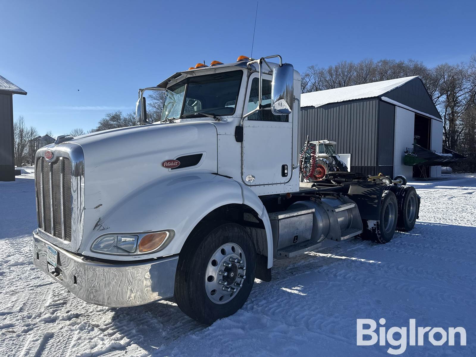 2010 Peterbilt 384 Day Cab Truck Tractor, 425 hp, 605,405 miles Showing, Title Will Be Marked Miles Exempt, Cummins ISX, Engine Brake, Block Heater, Eaton Fuller, 10 Forward Speeds, 12,000 Front Axle Lbs., 3,000 Rear Axle Lbs., Air Suspension, 295/75R22 Front Tires, 295/75R22 Rear Tires, Differential Lock, Aluminum Rims, Heater, AC, Radio, NOTE: Engine has been deleted/Does not use DEF - exhaust emissions of this item have been altered - BigIron is not responsible or liable for failure to comply with state or federal emission regulations, Small cracks on front of hood & passenger lower fender, VIN: 1XPVD09XXAD113618