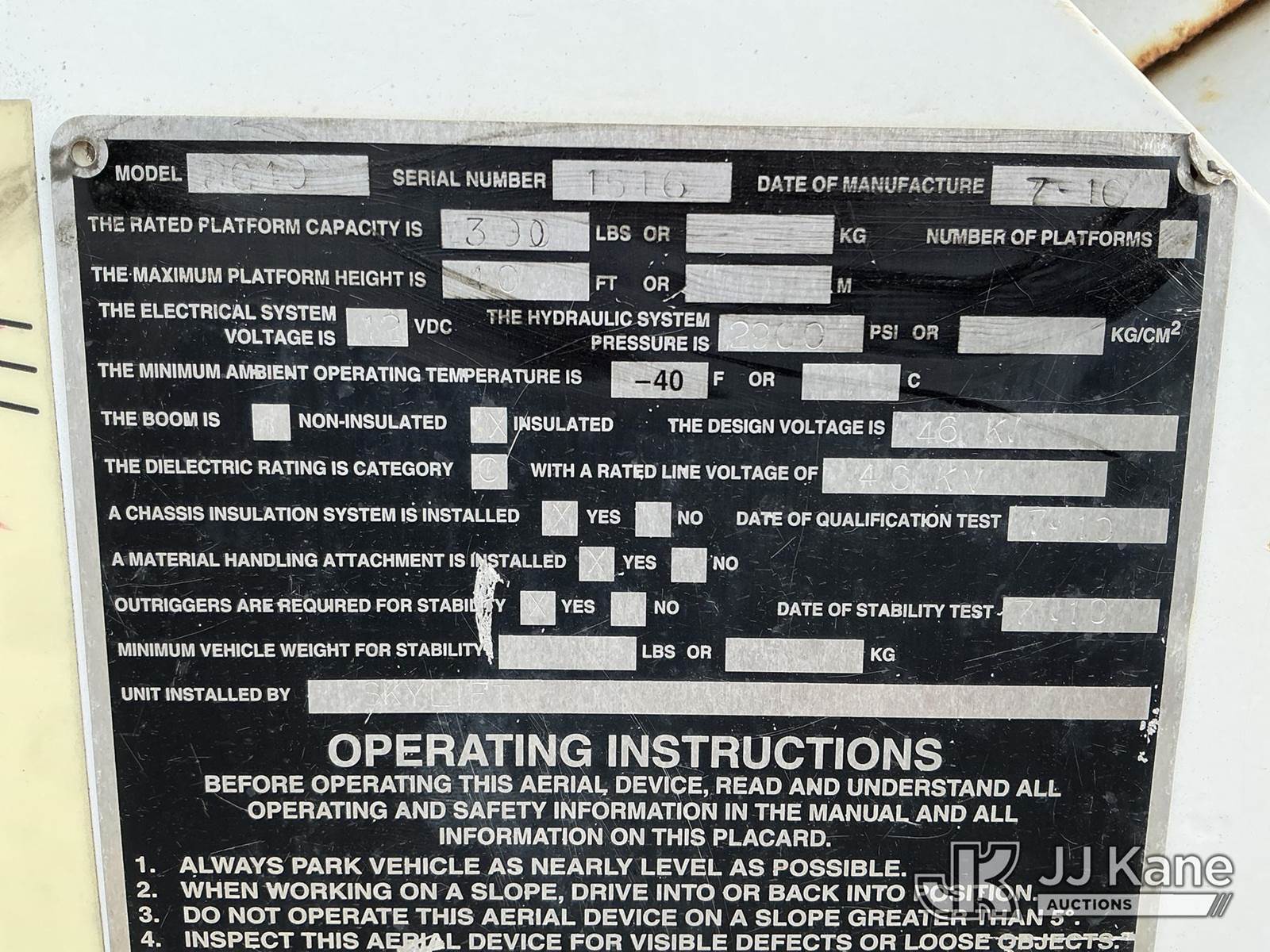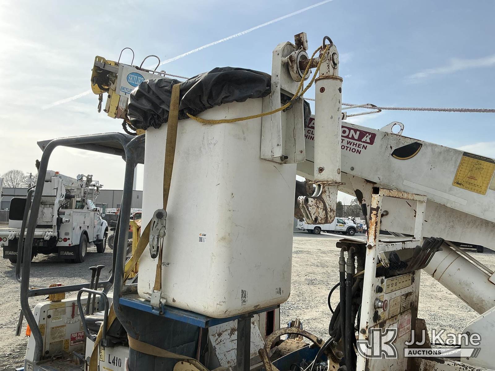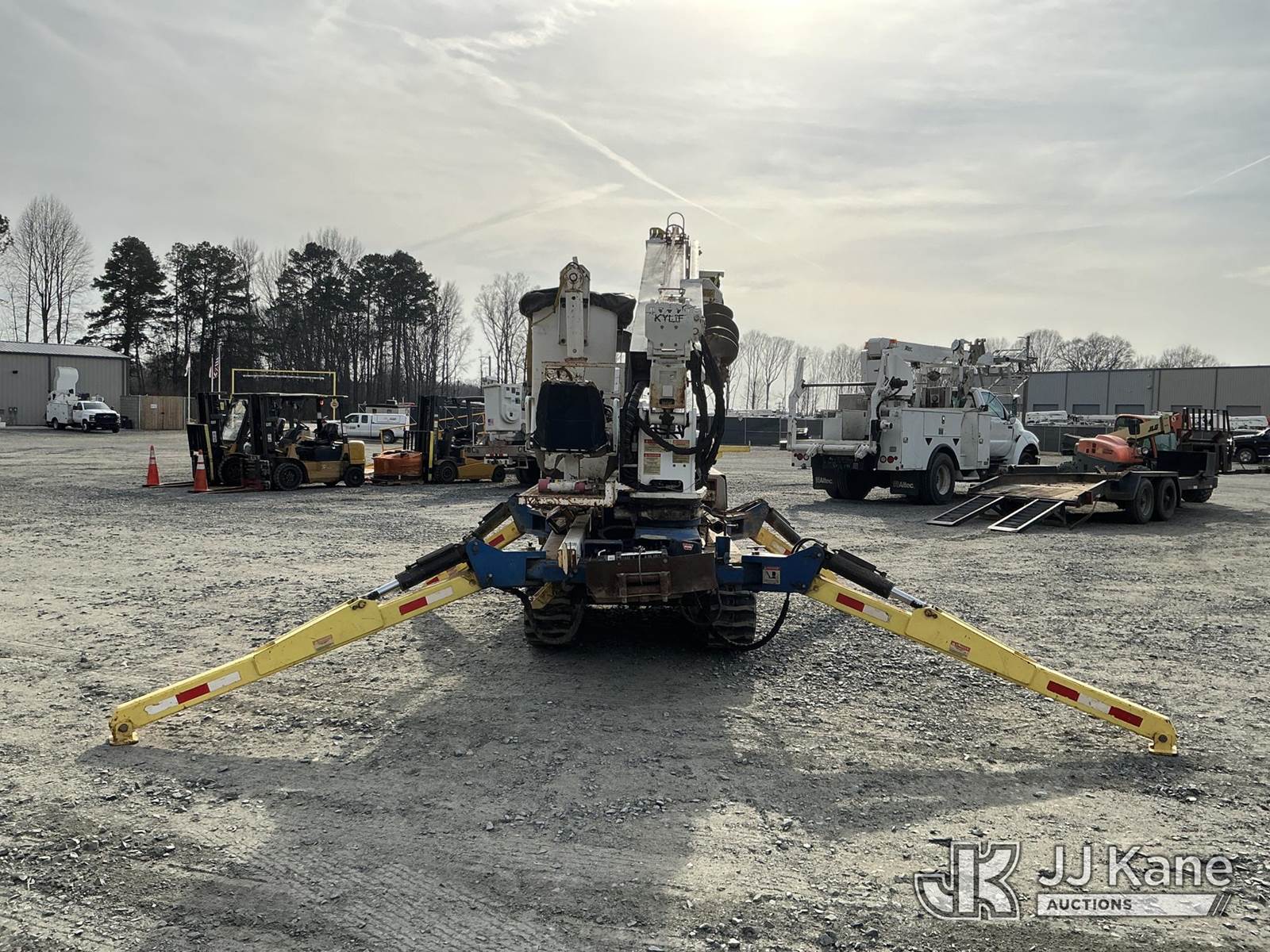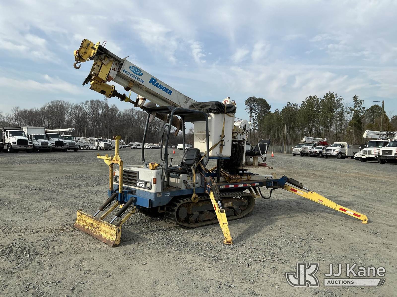 Skylift RG40, 5,000 Lb Back Yard Digger Derrick s/n 1516, with 40 ft. sheave height, 1spd digger, heel winch, detachable pole grabs, pin on bucket, 8 ft. jib, riding console w/remote, rear mounted on 2010 IHI IC35 All-Terrain Track Machine, s/n CJ000184, Kubota diesel, Hydrostatic, with push blade & 2011 T/A Tagalong Support Trailer Vin: 457EA0H94B1022125, To Be Sold With Lot# TG610 (Equipment and trailer price will be split out on invoice to reflect 80/20, equipment to trailer price ratio for tax purposes) (Runs & Moves) (Upper Condition Unknown, Upper Hyd Lines Dry Rotted) (Reads 1,695 hours) NOTE: This unit is being sold AS IS/WHERE IS via Timed Auction and is located in China Grove, NC. Inspection & preview days for this unit are the 2 business days prior to the first day of items closing for this auction, item is located at 820 E NC Hwy 152 China Grove, NC 28023 and hours of operations are 8a-4p. For pre-sale questions, please contact Office Staff @ (704) 674-1113. (Missing manuals, See Auction Company for Manufacturers Information to obtain manuals) (Buyer is responsible for removal. Assistance by consignor or JJ Kane Auctions is not assured.)