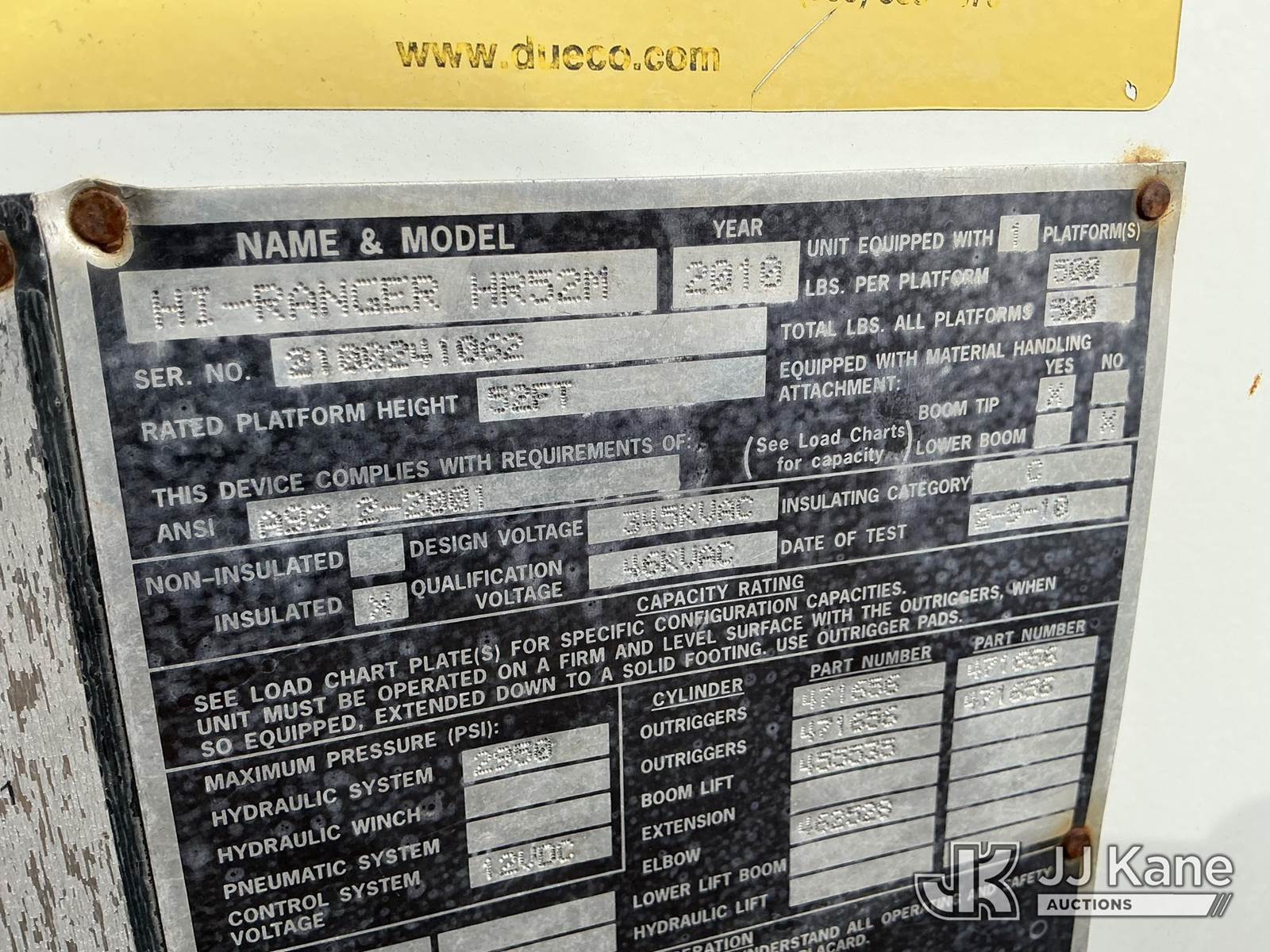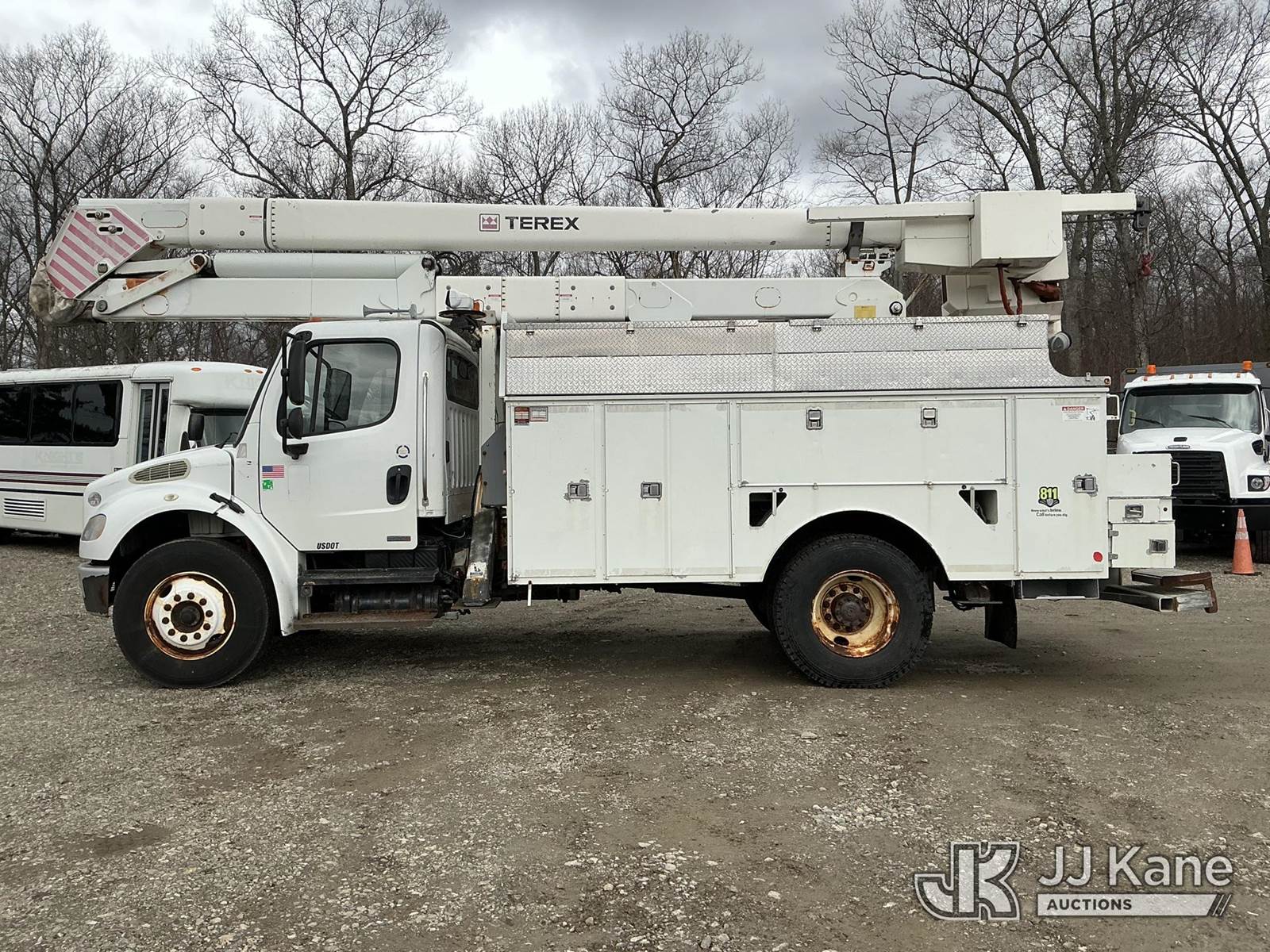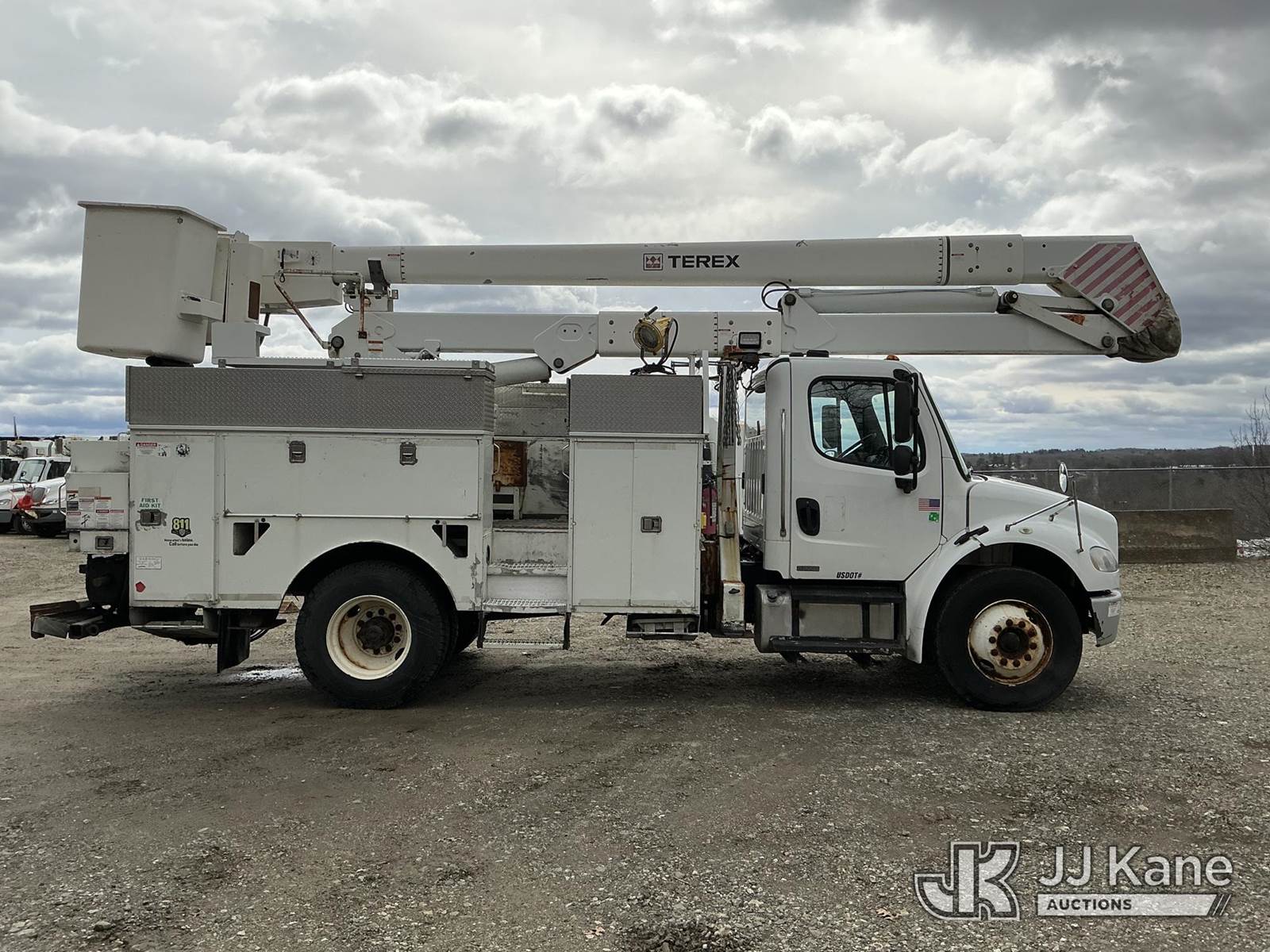 Terex/HiRanger HR-52MH, 57 ft, Material Handling Bucket Truck s/n 2100241062, with single-man bucket & 4 hyd outriggers, rear mounted on 2010 Freightliner M2 106 Utility Truck, Cummins 6.7L 4X2, diesel, Auto, A/C, True Mileage Unknown (Runs, Moves & Upper Operates) (ABS Light On) (Reads 13,204 hours) This is a Titled Item NOTE: This unit is being sold AS IS/WHERE IS via Timed Auction and is located in Shrewsbury, MA. Inspection & preview days for this unit are the 2 business days prior to the first day of items closing for this auction, item is located at 11 Fortune Blvd Shrewsbury, MA 01545 and hours of operations are 8a-4p. For pre-sale questions, please contact Rob Gifford @ (508) 864-4126. (Manuals provided in cab) (Buyer is responsible for removal. Assistance by consignor or JJ Kane Auctions is not assured.)