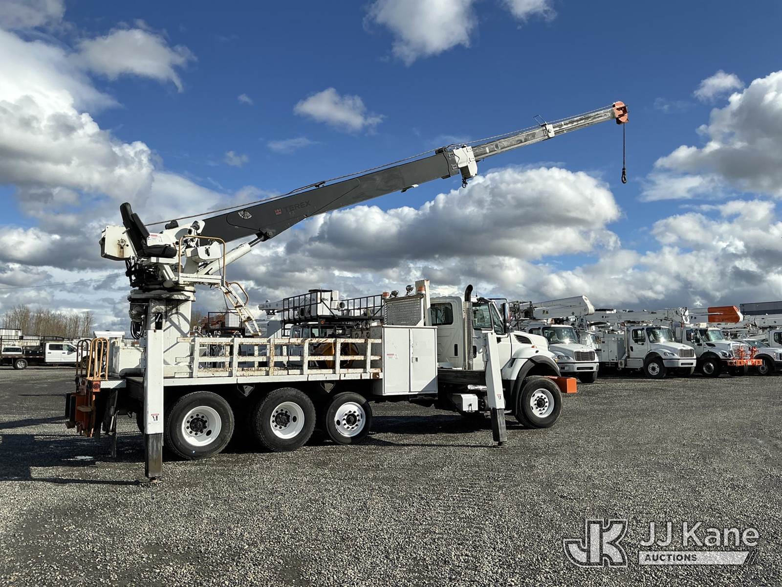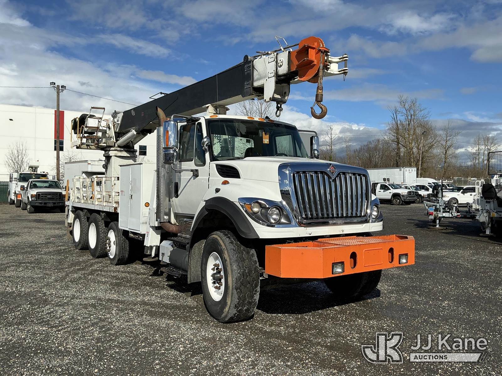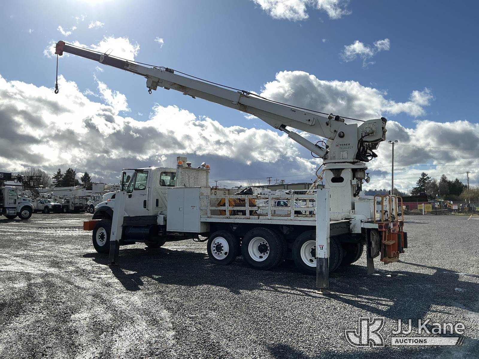 Terex/Telelect General, 42,250 Lb Derrick s/n 2090639867, with 81 ft sheave height, 4-section boom, heel winch, & riding console, rear mounted on 2010 International 7600 Tri-Axle Flatbed/Utility Truck, 10.8L L6 DIESEL 6X4, Auto, A/C, (97,487 miles) (Runs, Moves & Operates.) This is a Titled Item NOTE: This unit is being sold AS IS/WHERE IS via Timed Auction and is located in Portland, OR. Inspection & preview days for this unit are the 2 business days prior to the first day of items closing for this auction, item is located at 13817 NE Sandy Blvd Portland, OR 97230 and hours of operations are 8a-4p. For pre-sale questions, please contact Tony Tully @ (503)-307-1348. Dealer License Number DL1391. (Missing manuals, See Auction Company for Manufacturers Information to obtain manuals) (Buyer is responsible for removal. Assistance by consignor or JJ Kane Auctions is not assured.)