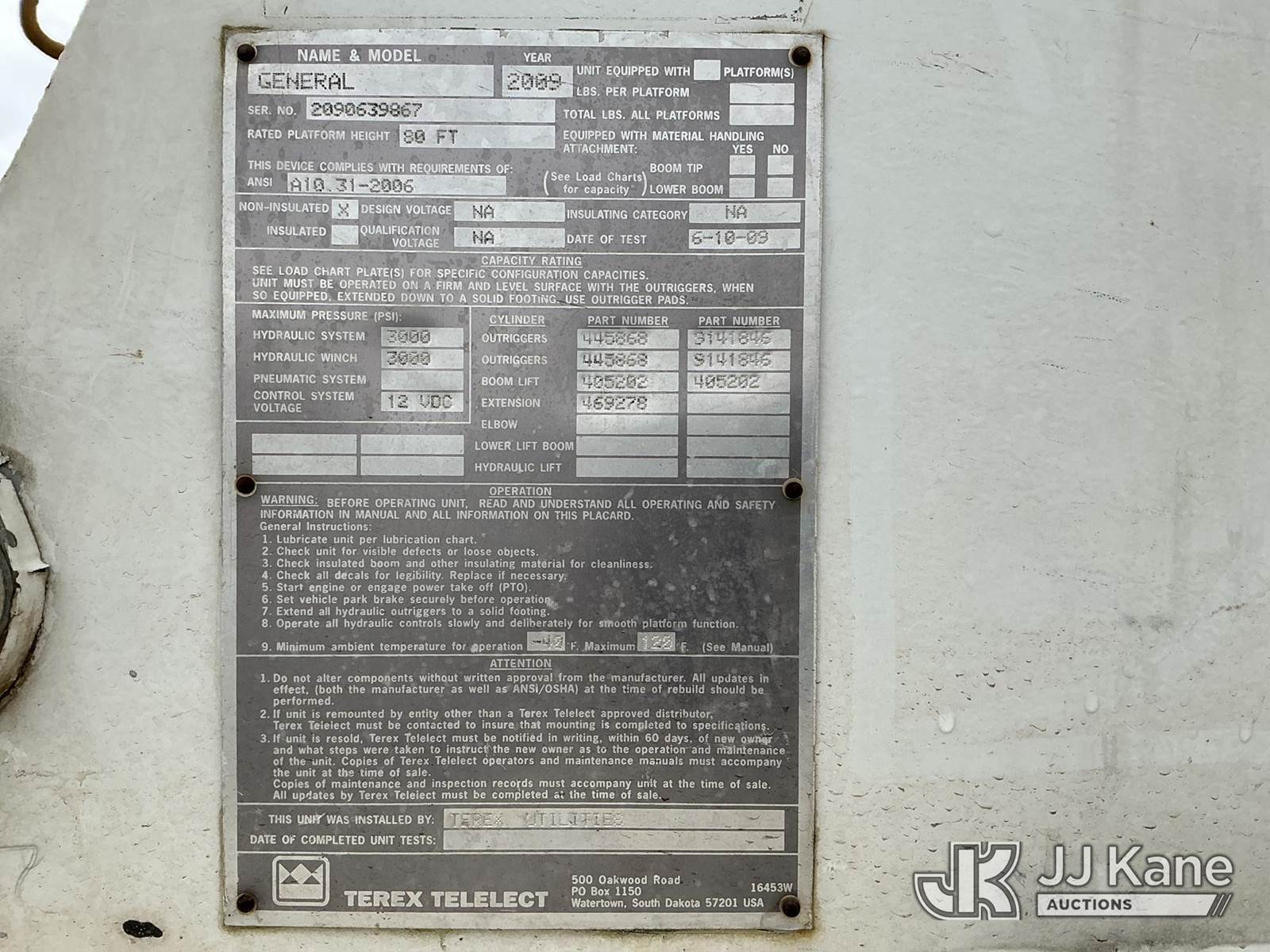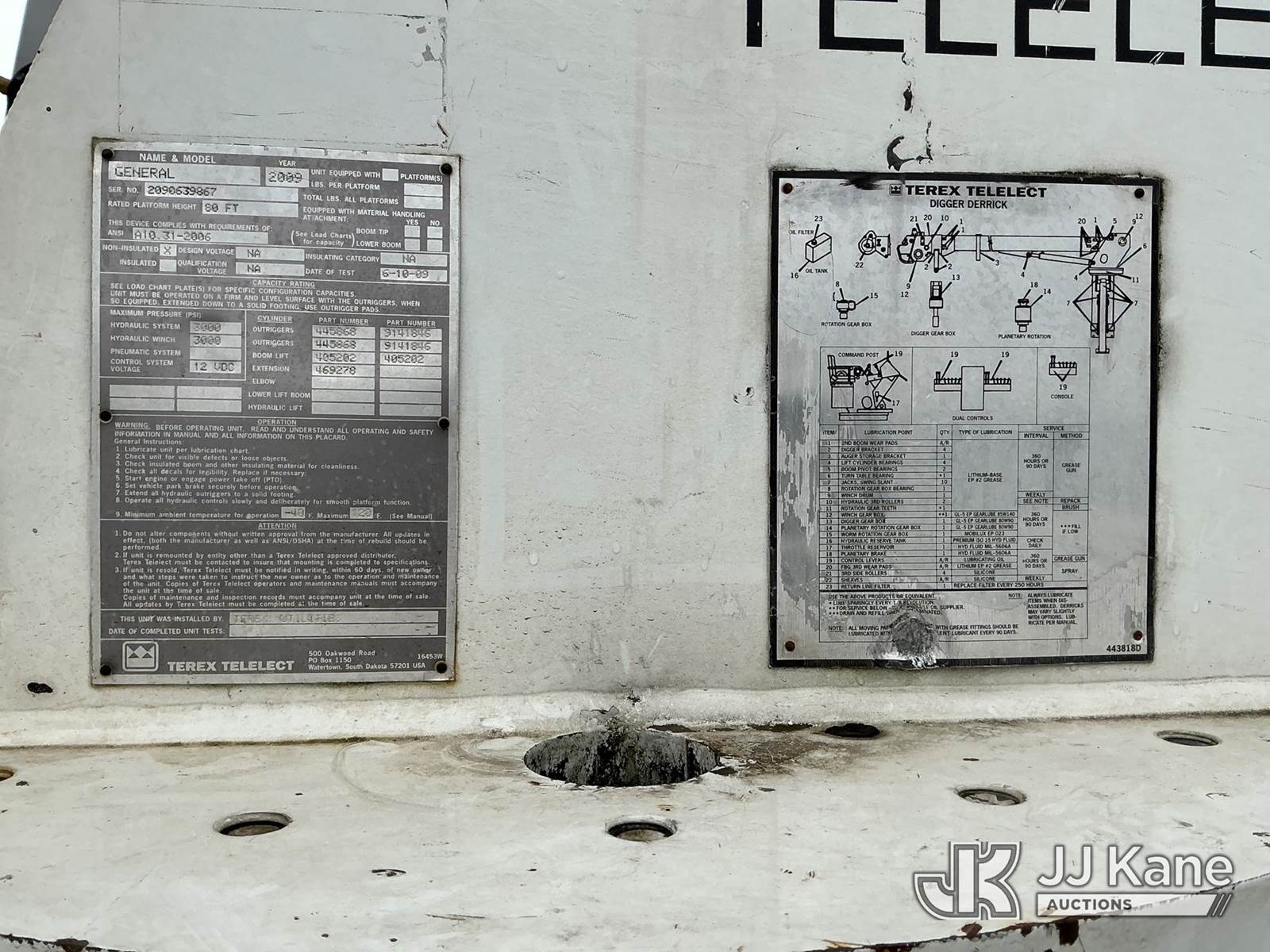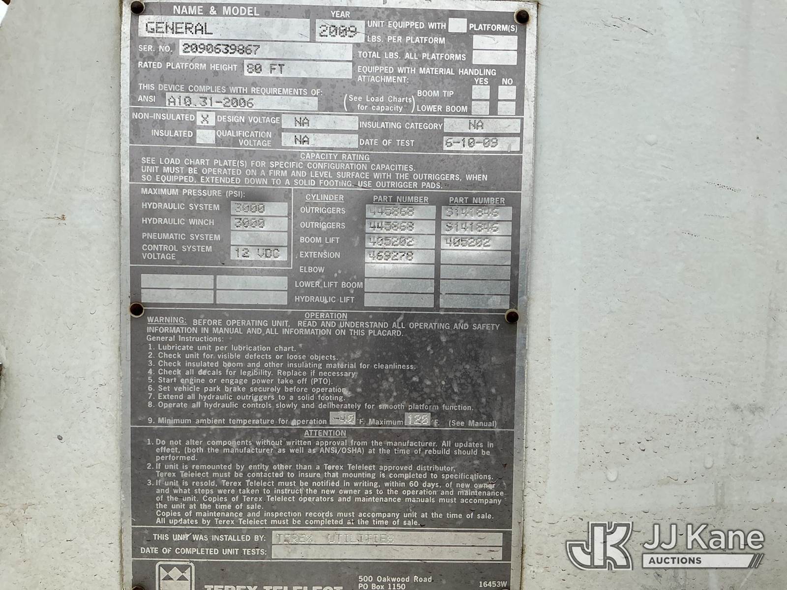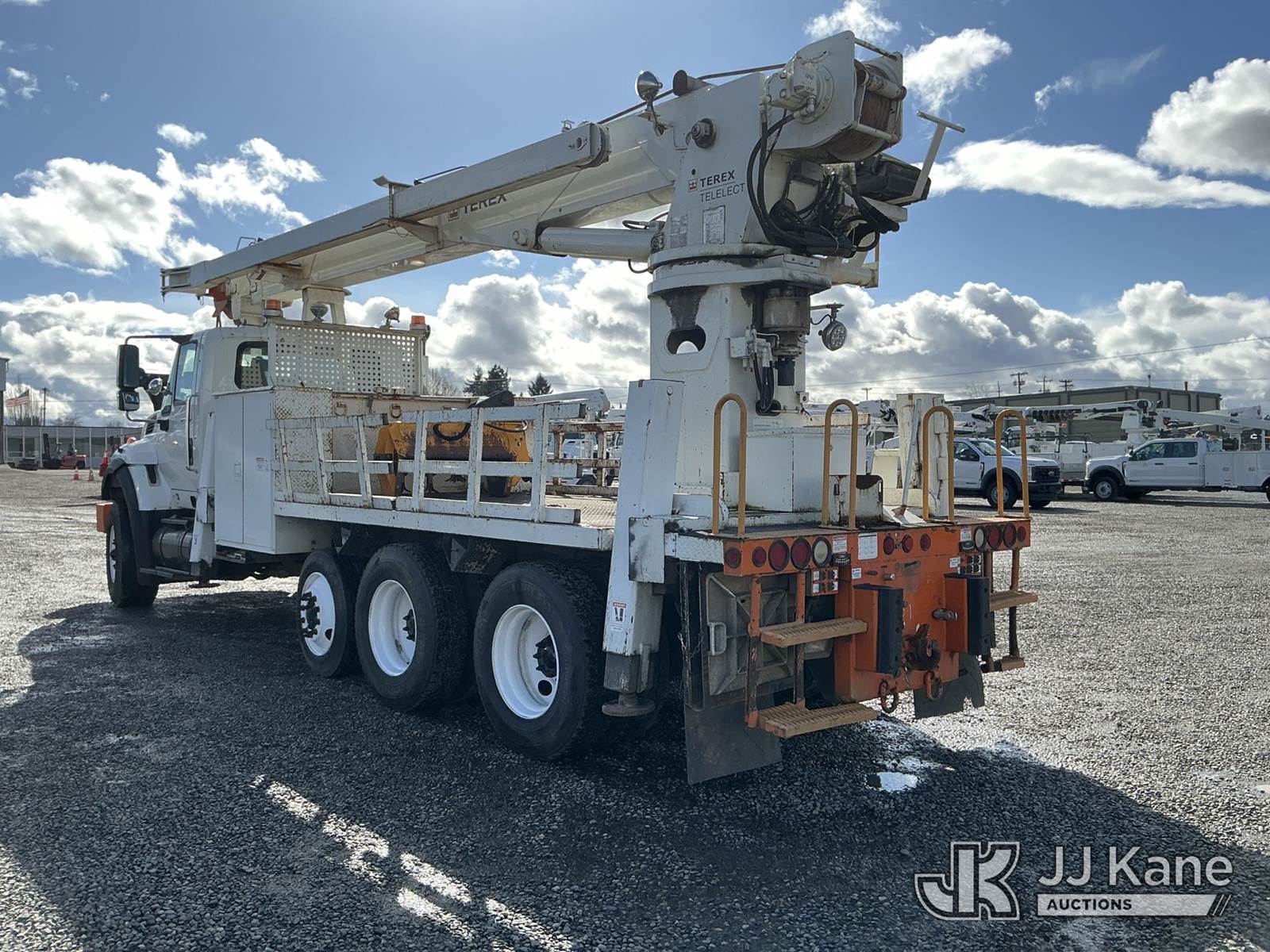 Terex/Telelect General, 42,250 Lb Derrick s/n 2090639867, with 81 ft sheave height, 4-section boom, heel winch, & riding console, rear mounted on 2010 International 7600 Tri-Axle Flatbed/Utility Truck, 10.8L L6 DIESEL 6X4, Auto, A/C, (97,487 miles) (Runs, Moves & Operates.) This is a Titled Item NOTE: This unit is being sold AS IS/WHERE IS via Timed Auction and is located in Portland, OR. Inspection & preview days for this unit are the 2 business days prior to the first day of items closing for this auction, item is located at 13817 NE Sandy Blvd Portland, OR 97230 and hours of operations are 8a-4p. For pre-sale questions, please contact Tony Tully @ (503)-307-1348. Dealer License Number DL1391. (Missing manuals, See Auction Company for Manufacturers Information to obtain manuals) (Buyer is responsible for removal. Assistance by consignor or JJ Kane Auctions is not assured.)