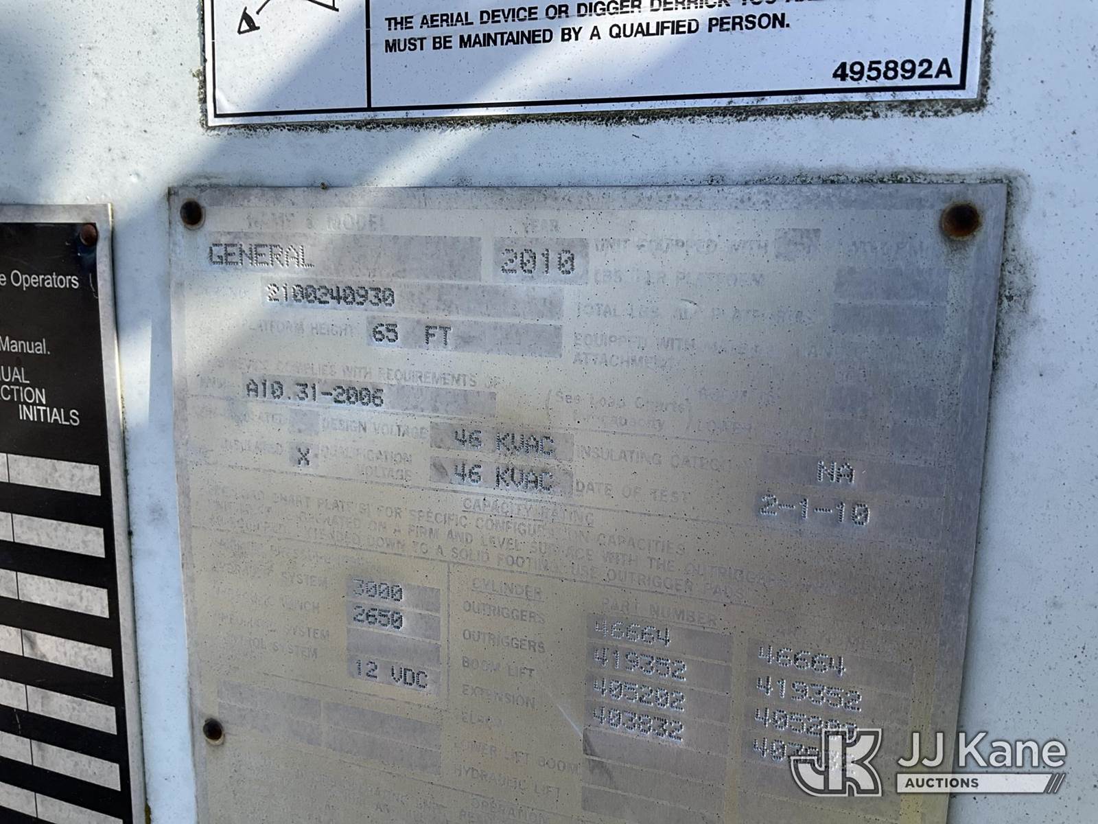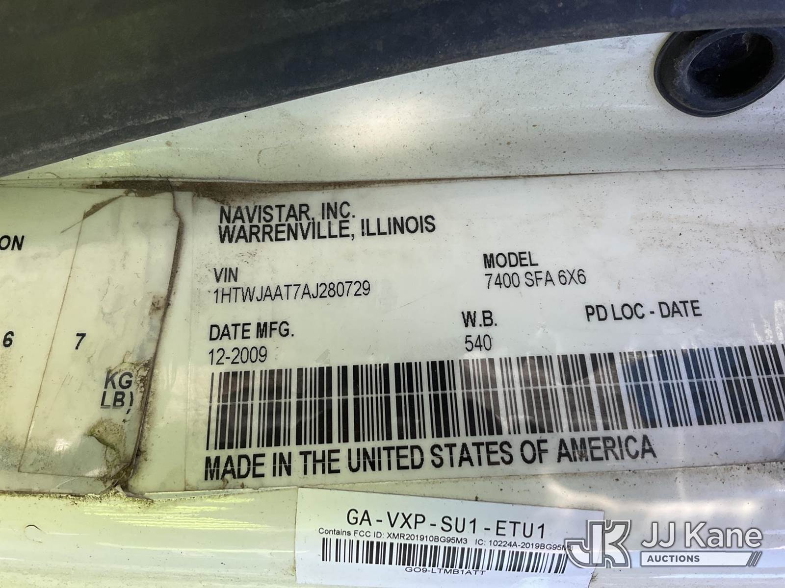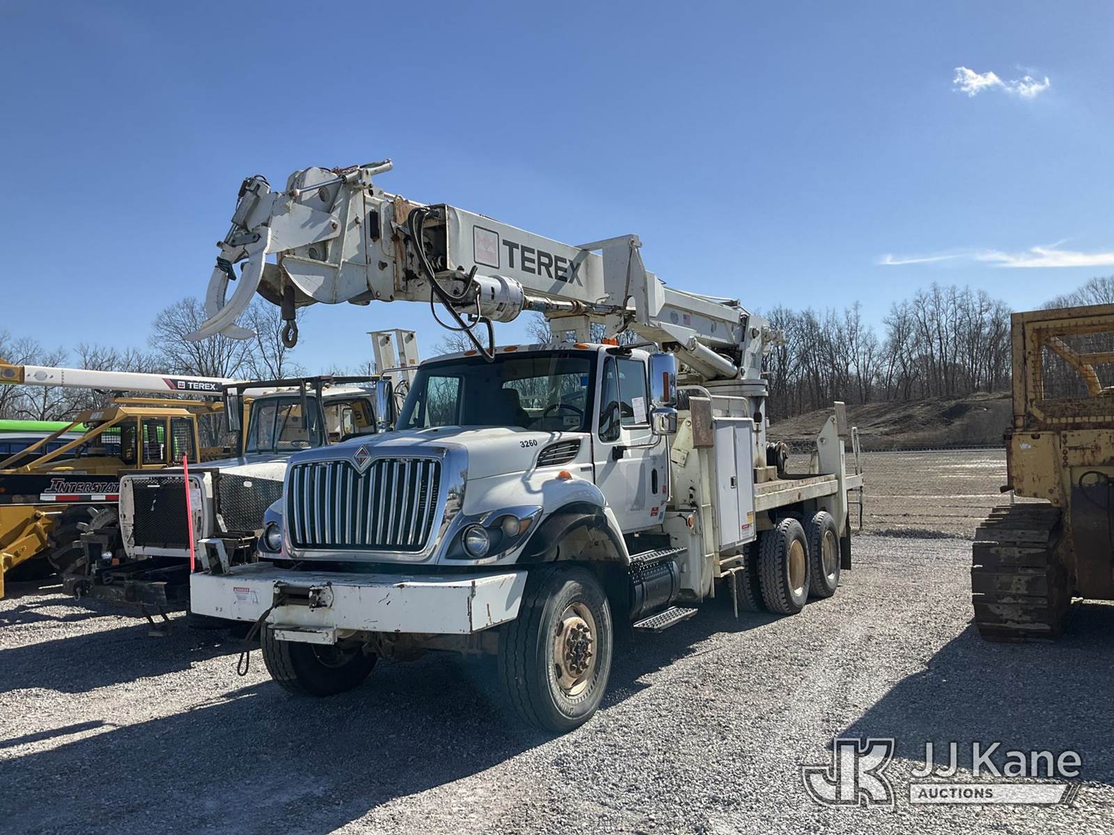 Terex/Telelect General, Digger Derrick s/n 2100240930, with 65 ft. sheave height, 3 section hyd boom, 2 spd digger, heel winch, pole guides, riding console & 4 hyd outriggers, rear mounted on 2010 International 7400 6x6 Flatbed/Utility Truck, 7.6L L6 diesel, Auto, A/C, with front winch, (142,860 miles) (Not Running, Condition Unknown) (Rust & Body Damage, Seller Notes: Boom Inoperable, Front Right Outrigger Will Bleed Off, Hyd. Leaks) This is a Titled Item NOTE: This unit is being sold AS IS/WHERE IS via Timed Auction and is located in Verona, KY. Inspection & preview days for this unit are the 2 business days prior to the first day of items closing for this auction, item is located at 2841 Verona-Mudlick Rd Ste B Verona, KY 41092 and hours of operations are 8a-4p. For pre-sale questions, please contact Office Staff @ (502) 612-5080. Auctioneer Michael Whitebread / License # 256617. (Missing manuals, See Auction Company for Manufacturers Information to obtain manuals) (Buyer is responsible for removal. Assistance by consignor or JJ Kane Auctions is not assured.)