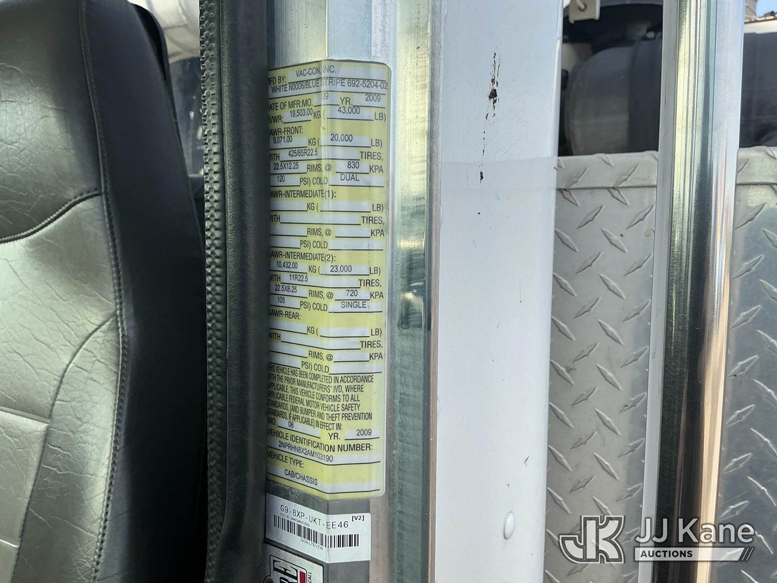 Vac-Con V350LHA, Vactor/Sewer & Jet Rodder System s/n 09095430, with snorkel, 5 CU yard debris body, 1,000 gallon fresh water capacity, mounted on 2010 Peterbilt 340 Vactor Truck, 8.3L Diesel Auto, with front reel, (129,279 miles) (Runs & Moves, Upper Operates) (Reads 14,756 hours) Subject to CARB Regs,CARB non Compliant,Cannot Operate on CA Roads/Highways until Compliant This is a Titled Item NOTE: This unit is being sold AS IS/WHERE IS via Timed Auction and is located in Dixon, CA. Inspection & preview days for this unit are the 2 business days prior to the first day of items closing for this auction, item is located at 8668 Sparling Ln Dixon, CA 95620 and hours of operations are 8a-4p. For pre-sale questions, please contact JJ Kane Staff at (707) 678-8060 (dixon@jjkane.com). Dealer License Number 45696. (Buyer is responsible for removal. Assistance by consignor or JJ Kane Auctions is not assured.)