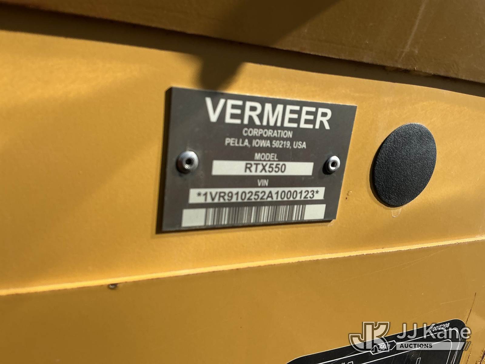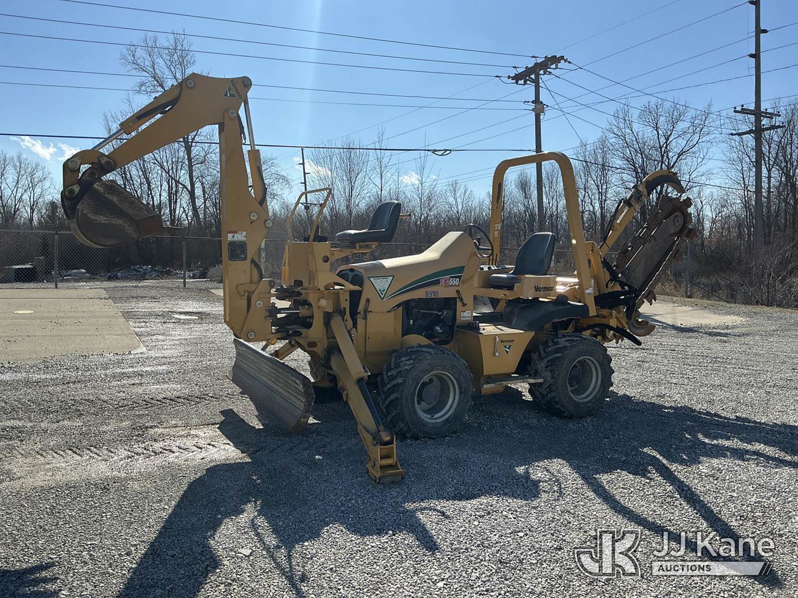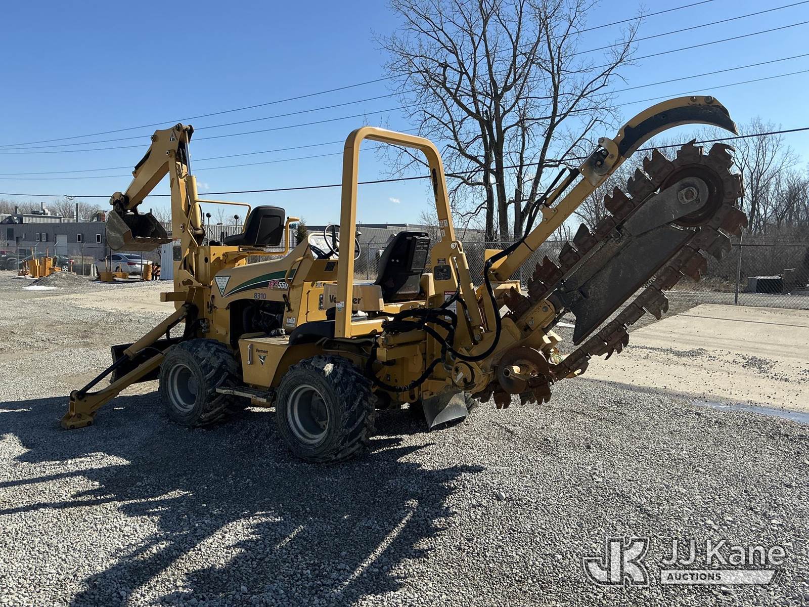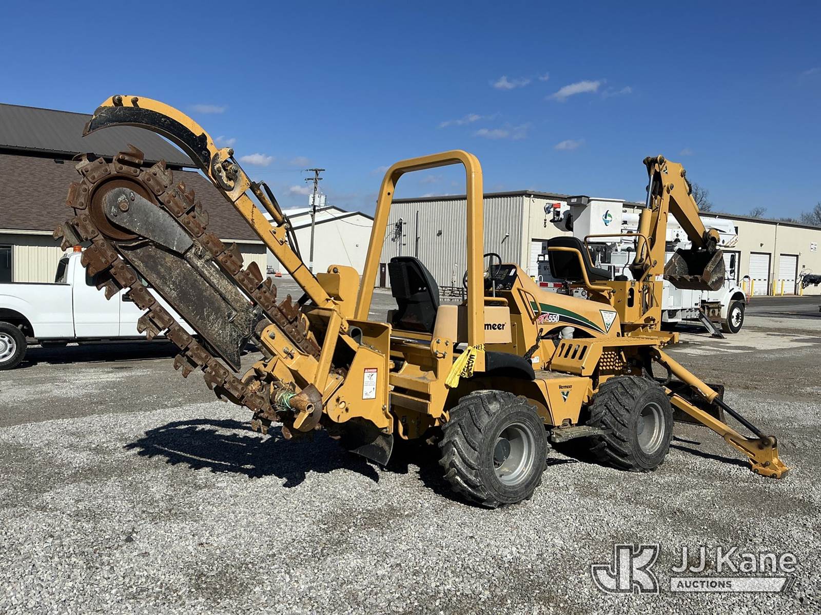 2010 Vermeer RTX550 Rubber Tired Trencher, s/n IVR910252A1000123, Cummins diesel, Hydrostatic, with sliding trencher boom w/ carbide & C-cup chain, backhoe attachment, 6-way backfill blade & ROPS, (Runs, Moves & Operates) (Reads 446 hours) NOTE: This unit is being sold AS IS/WHERE IS via Timed Auction and is located in Fort Wayne, IN. Inspection & preview days for this unit are the 2 business days prior to the first day of items closing for this auction, item is located at 3020 Commercial Rd Fort Wayne, IN 46809 and hours of operations are 8a-4p. For pre-sale questions, please contact Eric Mcintosh @ (260) 205-2483 (Buyer is responsible for removal. Assistance by consignor or JJ Kane Auctions is not assured.)
