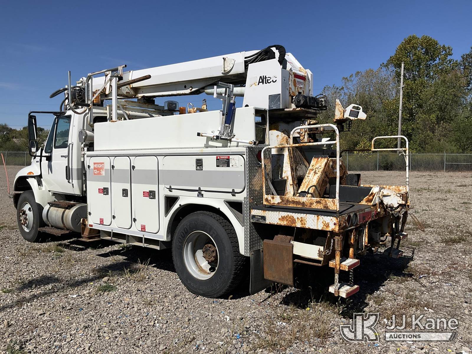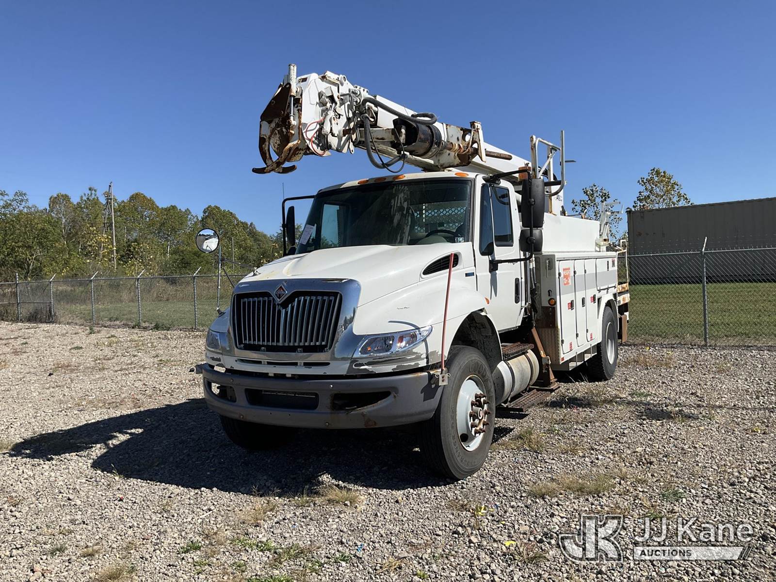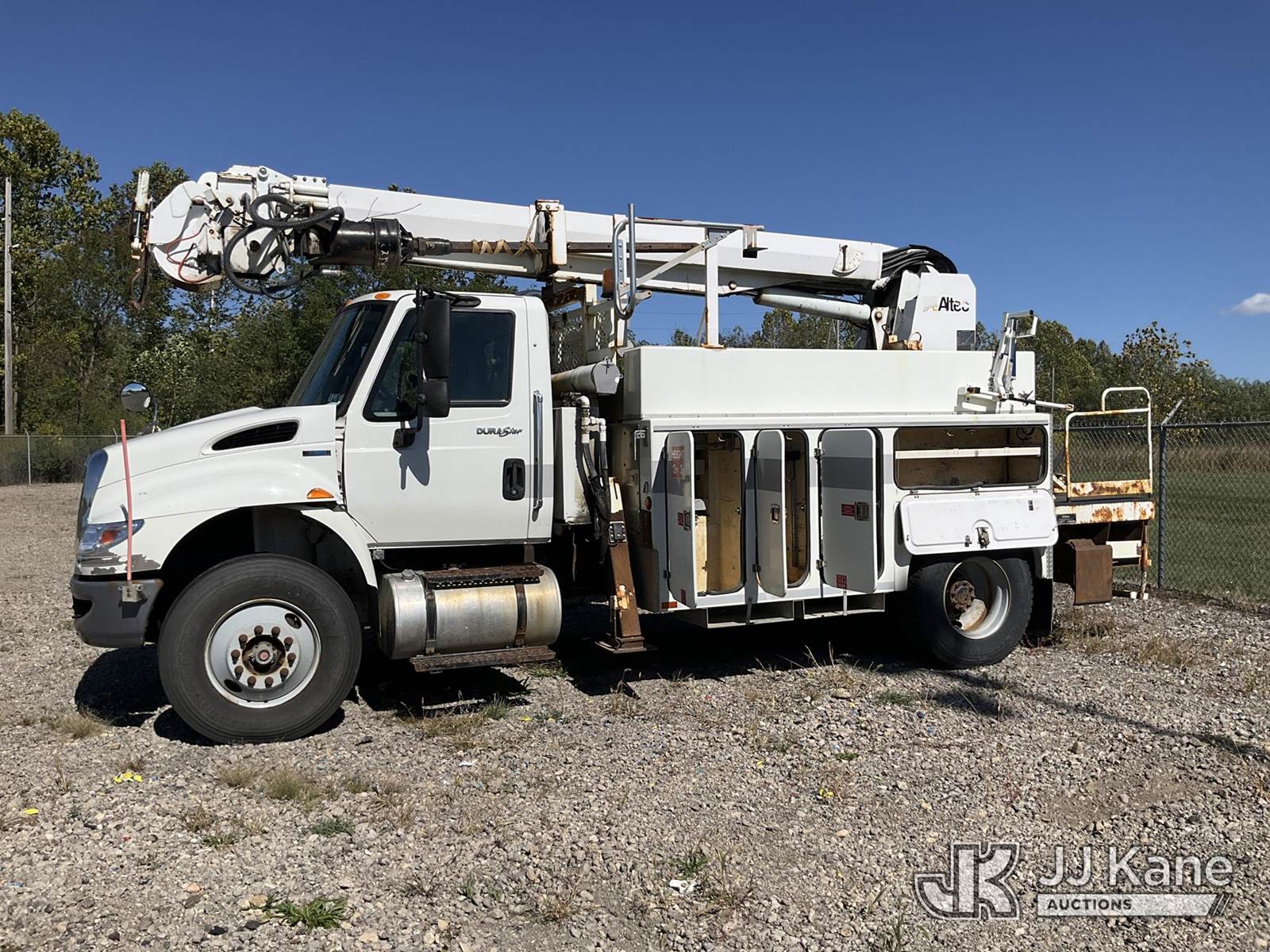 19,820 Lb Digger Derrick s/n 0510DU0910, with 45 Ft sheave height, boom tip winch, two spd. digger, pole guides, rear stand-up controls,, rear mounted on 2011 International 4400 Utility Truck, 7.6L diesel Auto, A/C, (158,443 miles) (Not Running, Condition Unknown, Upper Operation Unknown, Driver Seat Ripped, Rust Damage) (Seller States: Corrosion Issues On Subframe & Unit Doesn't Run) This is a Titled Item NOTE: This unit is being sold AS IS/WHERE IS via Timed Auction and is located in Louisville, OH. Inspection & preview days for this unit are the 2 business days prior to the first day of items closing for this auction, item is located at 3648 Beck Ave Louisville, OH 44641 and hours of operations are 8a-4p. For pre-sale questions, please contact Aaron Coleman @ (330) 495-4041 or aaron.coleman@jjkane.com. (Manuals provided in cab) (Buyer is responsible for removal. Assistance by consignor or JJ Kane Auctioneers is not assured.)