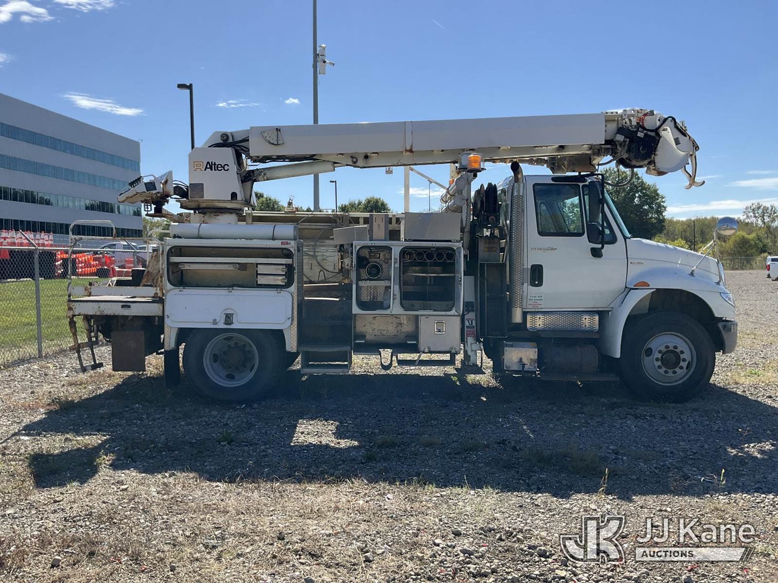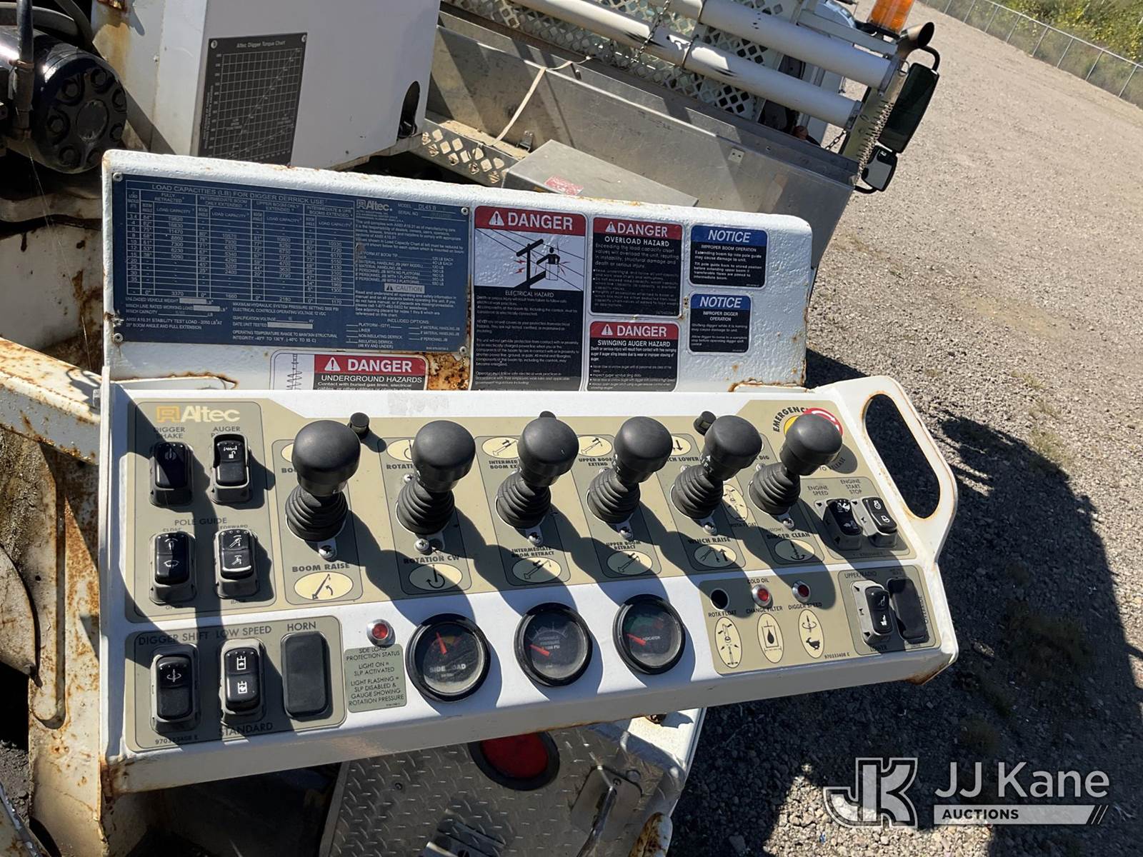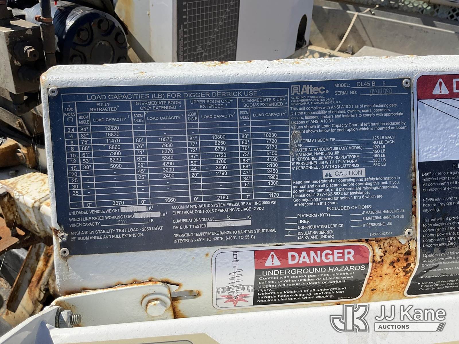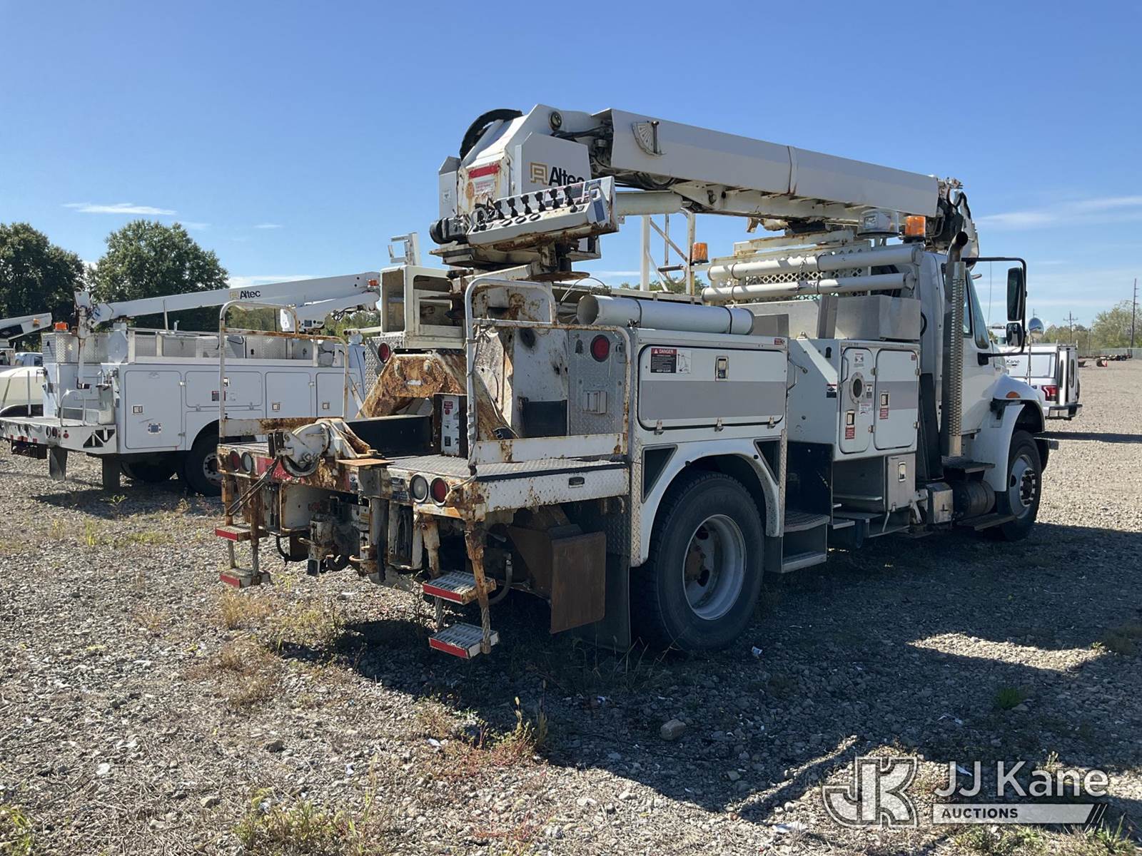 19,820 Lb Digger Derrick s/n 0510DU0910, with 45 Ft sheave height, boom tip winch, two spd. digger, pole guides, rear stand-up controls,, rear mounted on 2011 International 4400 Utility Truck, 7.6L diesel Auto, A/C, (158,443 miles) (Not Running, Condition Unknown, Upper Operation Unknown, Driver Seat Ripped, Rust Damage) (Seller States: Corrosion Issues On Subframe & Unit Doesn't Run) This is a Titled Item NOTE: This unit is being sold AS IS/WHERE IS via Timed Auction and is located in Louisville, OH. Inspection & preview days for this unit are the 2 business days prior to the first day of items closing for this auction, item is located at 3648 Beck Ave Louisville, OH 44641 and hours of operations are 8a-4p. For pre-sale questions, please contact Aaron Coleman @ (330) 495-4041 or aaron.coleman@jjkane.com. (Manuals provided in cab) (Buyer is responsible for removal. Assistance by consignor or JJ Kane Auctioneers is not assured.)
