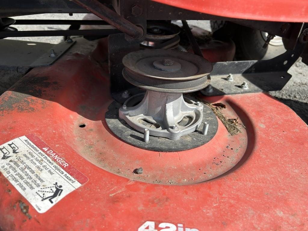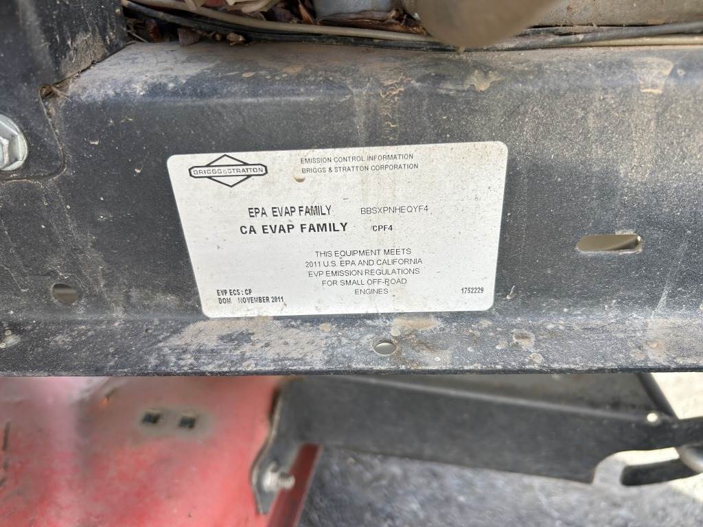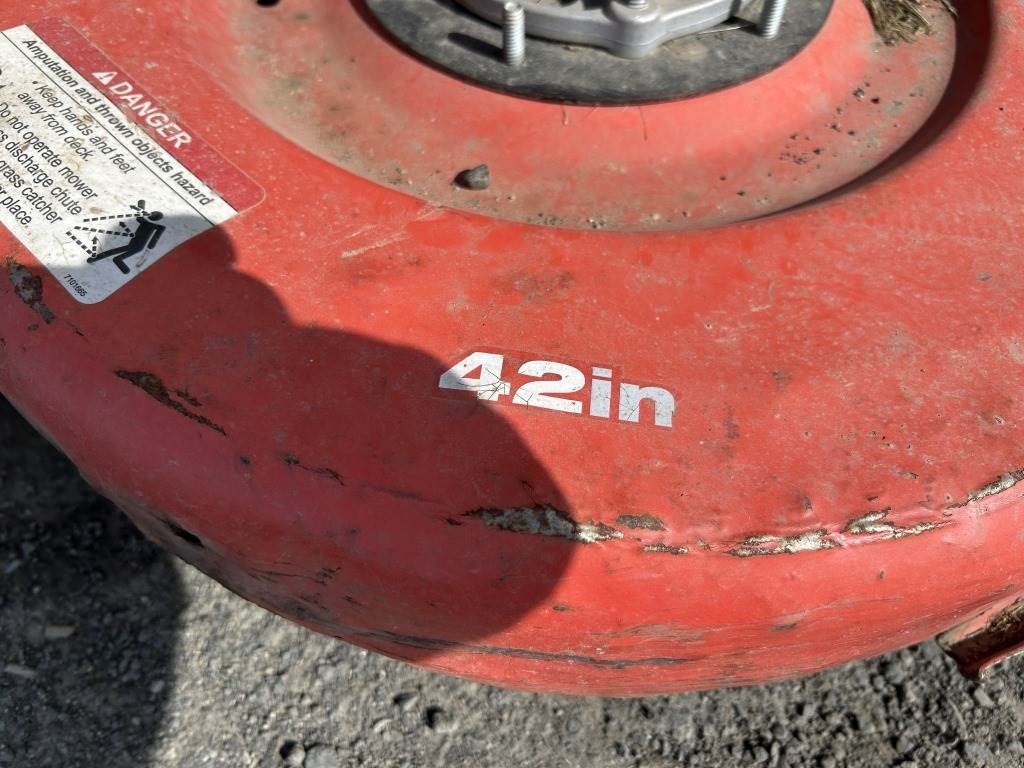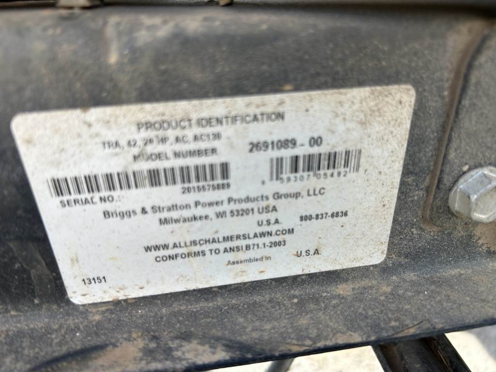 Location: Spokane WA ***End-User Consignment*** S/N: 2015575888 Engine: Briggs & Stratton Gas 42" Cutting deck, 7 deck positions, side chute, 20 hp, 15x6.00 front tires, 20x10.00-8 rear tires.